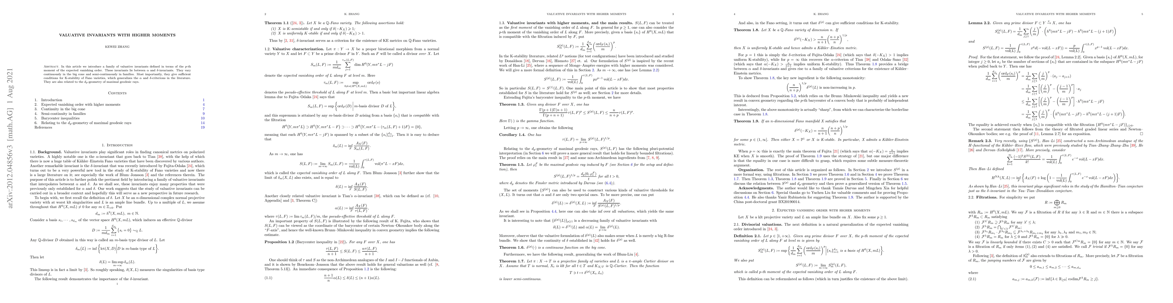 This paper introduces new valuative invariants based on $p$-th moment of vanishing order, which detect K-stability of Fano varieties and relate to $d_p$-geometry, offering a continuous variation in the big cone and semi-continuously in families.