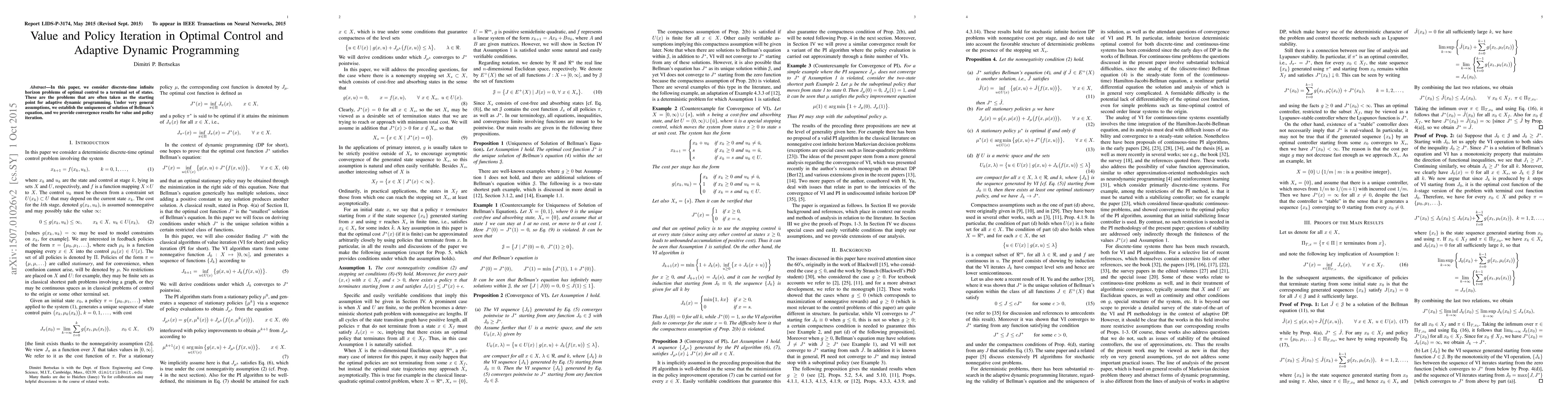 In this paper, we consider discrete-time infinite horizon problems of optimal control to a terminal set of states. These are the problems that are often taken as the starting point for adaptive dynamic programming. Under very general assumptions, we establish the uniqueness of solution of Bellman's equation, and we provide convergence results for value and policy iteration.