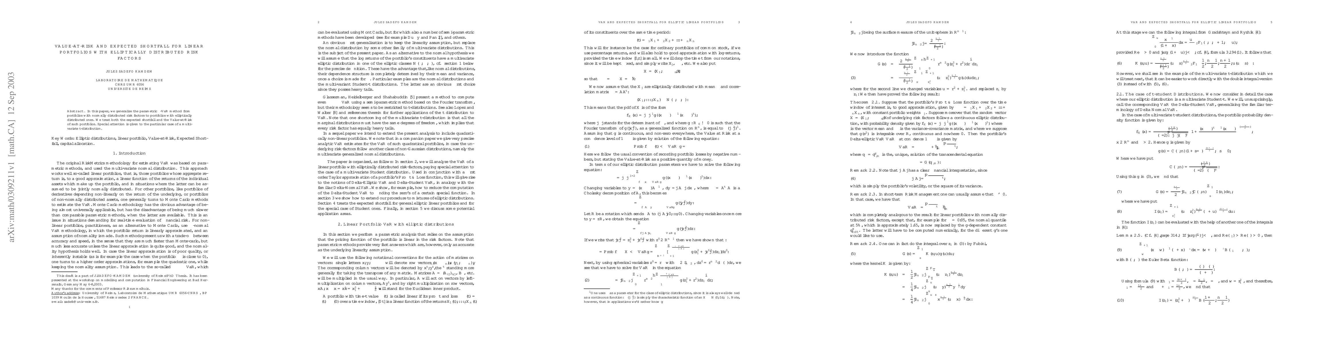 This paper extends VaR calculations to portfolios with elliptically distributed risk factors, improving accuracy for multivariate t-distributions. It provides a general method for estimating both Value-at-Risk and expected shortfall.