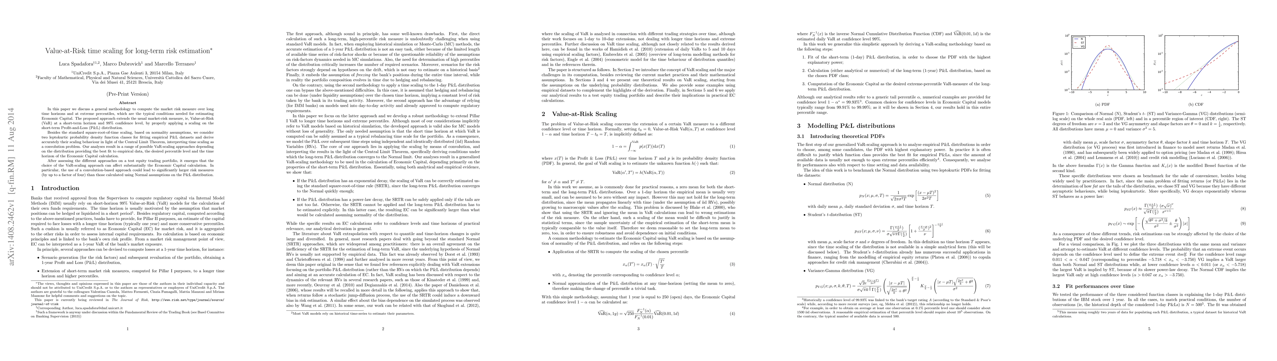 Researchers propose a new method to estimate long-term risk using Value-at-Risk (VaR) time scaling, which can significantly impact Economic Capital calculations, with some approaches leading to up to four times larger risk measures than those calculated under normal assumptions.
