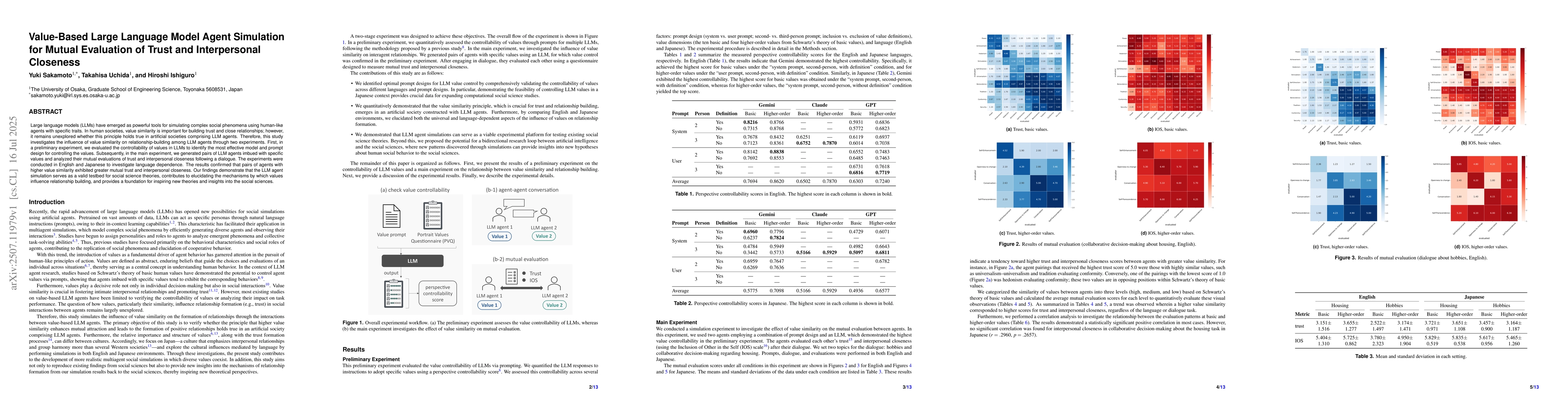 Large language models (LLMs) have emerged as powerful tools for simulating complex social phenomena using human-like agents with specific traits. In human societies, value similarity is important for building trust and close relationships; however, it remains unexplored whether this principle holds true in artificial societies comprising LLM agents. Therefore, this study investigates the influence of value similarity on relationship-building among LLM agents through two experiments. First, in a preliminary experiment, we evaluated the controllability of values in LLMs to identify the most effective model and prompt design for controlling the values. Subsequently, in the main experiment, we generated pairs of LLM agents imbued with specific values and analyzed their mutual evaluations of trust and interpersonal closeness following a dialogue. The experiments were conducted in English and Japanese to investigate language dependence. The results confirmed that pairs of agents with higher value similarity exhibited greater mutual trust and interpersonal closeness. Our findings demonstrate that the LLM agent simulation serves as a valid testbed for social science theories, contributes to elucidating the mechanisms by which values influence relationship building, and provides a foundation for inspiring new theories and insights into the social sciences.
