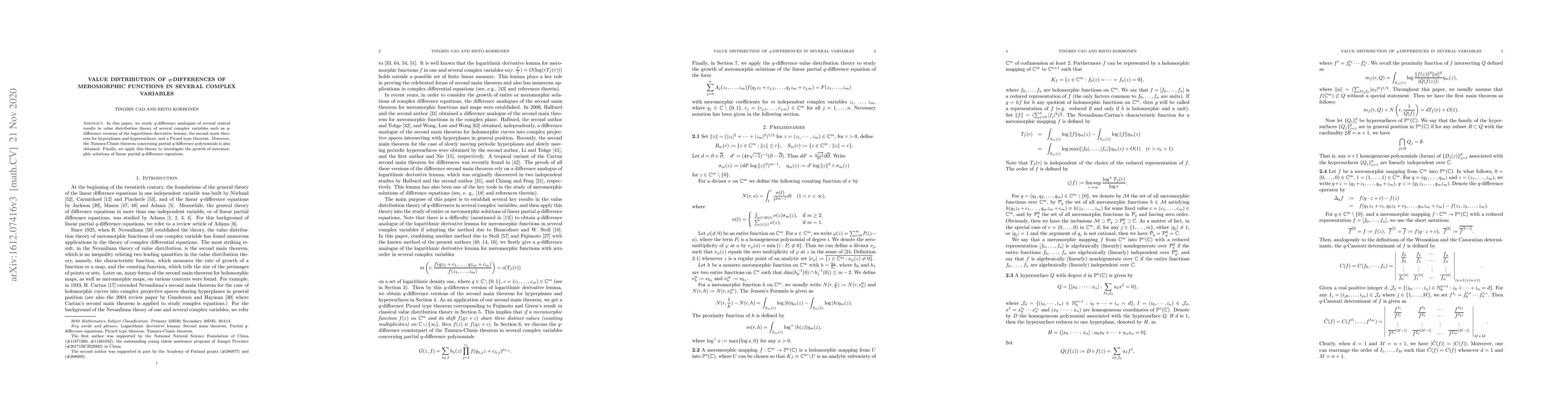 This paper explores $q$-difference analogues of key value distribution results in several complex variables, including the logarithmic derivative lemma, the second main theorem, and a Picard type theorem. It also extends the Tumura-Clunie theorem and applies the developed theory to study the growth of meromorphic solutions of linear partial $q$-difference equations.