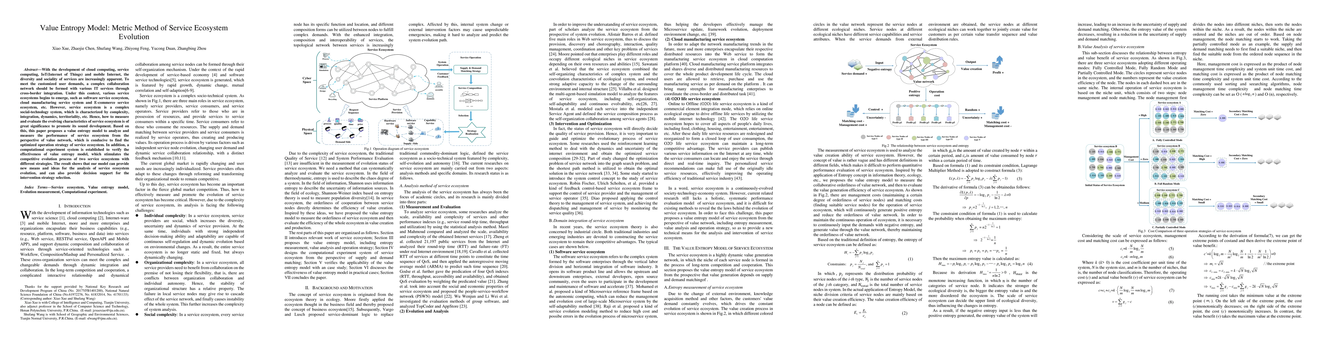 With the development of cloud computing, service computing, IoT(Internet of Things) and mobile Internet, the diversity and sociality of services are increasingly apparent. To meet the customized user demands, service ecosystems begins to emerge with the formation of various IT services collaboration network. However, service ecosystem is a complex social-technology system with the characteristics of natural ecosystems, economic systems and complex networks. Hence, how to realize the multi-dimensional evaluation of service ecosystem is of great significance to promote its sound development. Based on this, this paper proposes a value entropy model to analyze the performance of service ecosystem, which is conducive to integrate evaluation indicators of different dimensions. In addition, a computational experiment system is constructed to verify the effectiveness of value entropy model. The result shows that our model can provide new means and ideas for the analysis of service ecosystem.