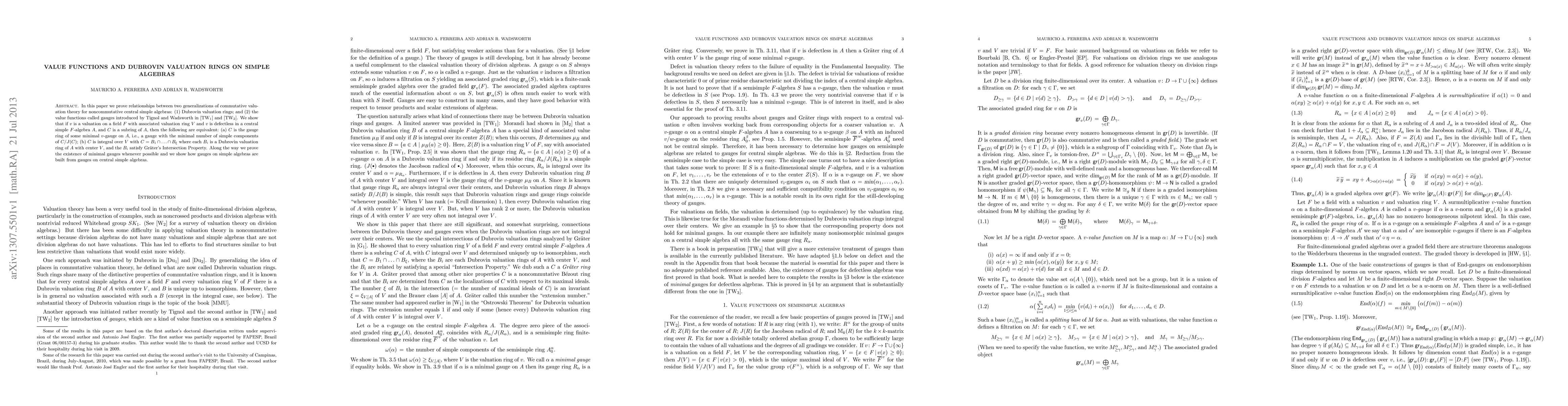 This paper establishes connections between Dubrovin valuation rings and gauges (value functions) on noncommutative central simple algebras, proving that certain conditions on a valuation ring and its associated valuation lead to equivalences involving the gauge ring and Dubrovin valuation rings. It also demonstrates the existence of minimal gauges and how they relate to simpler algebra structures.