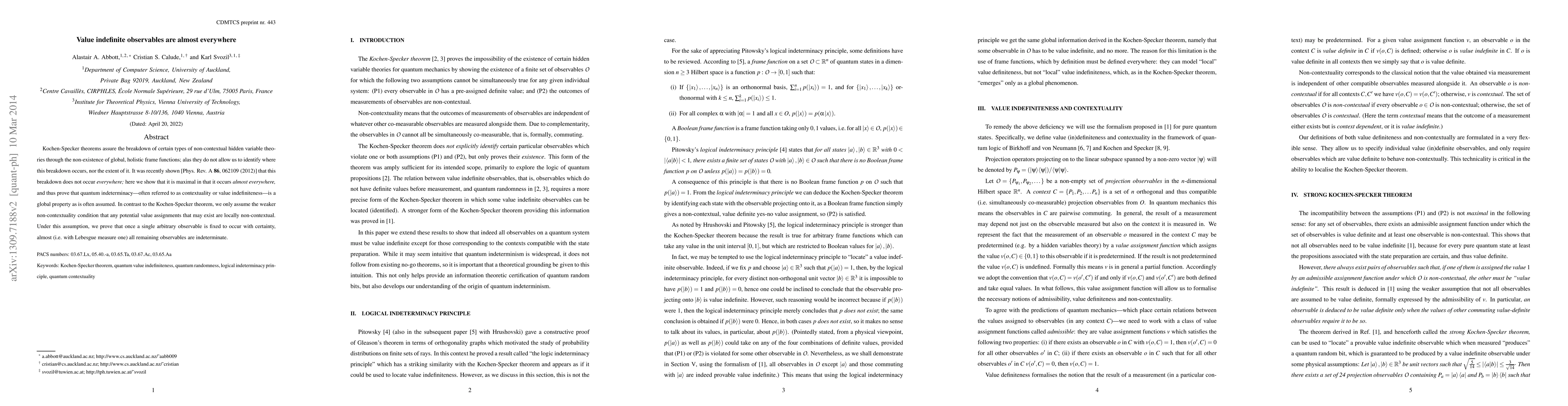 Researchers prove that quantum indeterminacy is a global property, showing that almost everywhere in a quantum system, observables become indeterminate once one observable is fixed to certainty. This challenges the idea of local non-contextuality conditions.