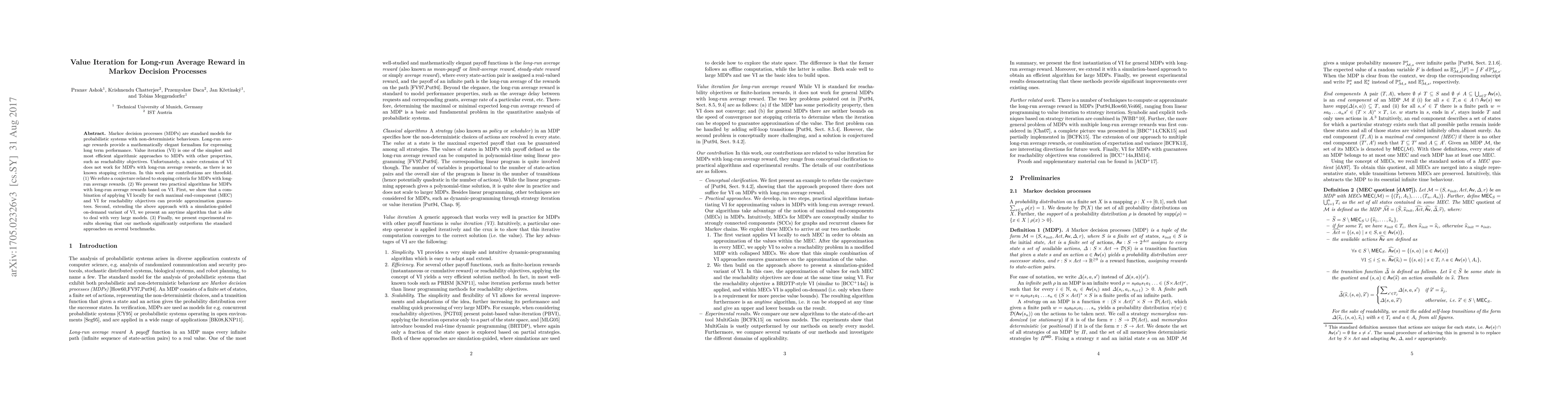 This paper addresses the challenge of applying value iteration to Markov decision processes (MDPs) with long-run average rewards, presenting two new algorithms that outperform standard methods. It refutes a related conjecture and provides approximation guarantees for the proposed anytime algorithm.
