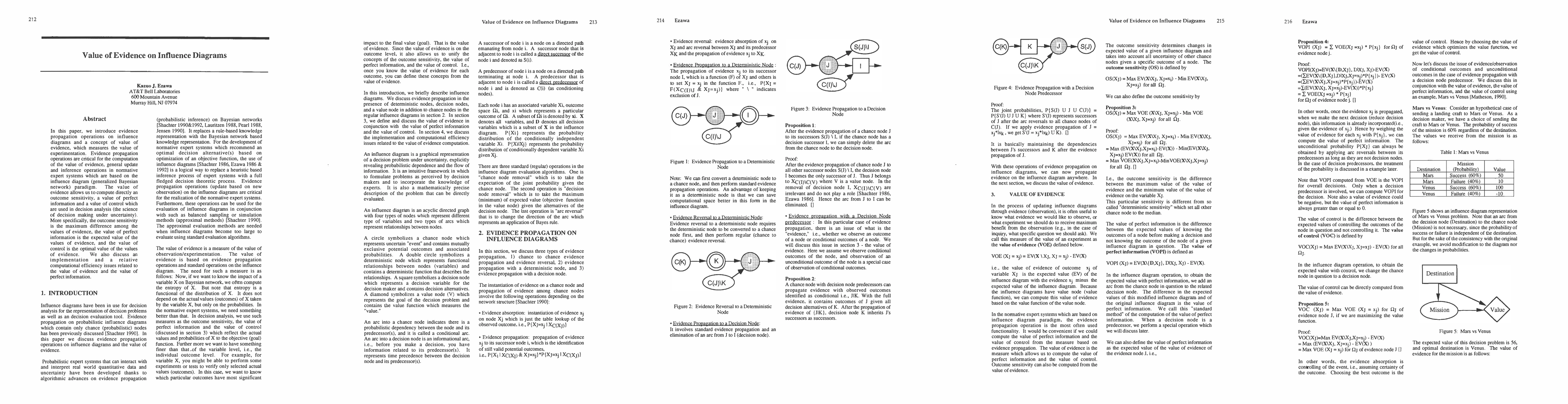 This paper introduces evidence propagation operations on influence diagrams and defines the value of evidence, which quantifies the benefit of experimentation. It discusses outcome sensitivity, value of perfect information, and value of control, and addresses computational efficiency in decision analysis.