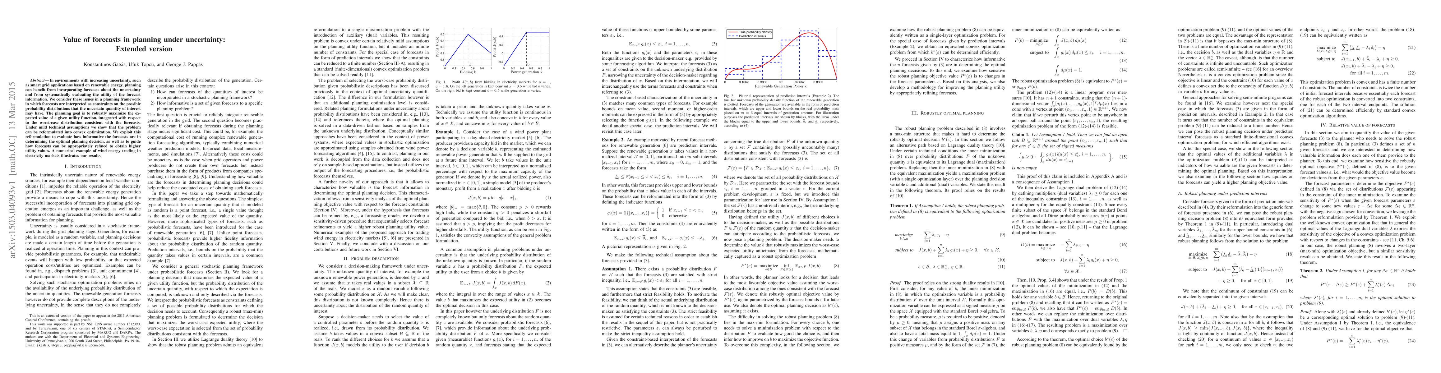 In environments with increasing uncertainty, such as smart grid applications based on renewable energy, planning can benefit from incorporating forecasts about the uncertainty and from systematically evaluating the utility of the forecast information. We consider these issues in a planning framework in which forecasts are interpreted as constraints on the possible probability distributions that the uncertain quantity of interest may have. The planning goal is to robustly maximize the expected value of a given utility function, integrated with respect to the worst-case distribution consistent with the forecasts. Under mild technical assumptions we show that the problem can be reformulated into convex optimization. We exploit this reformulation to evaluate how informative the forecasts are in determining the optimal planning decision, as well as to guide how forecasts can be appropriately refined to obtain higher utility values. A numerical example of wind energy trading in electricity markets illustrates our results.