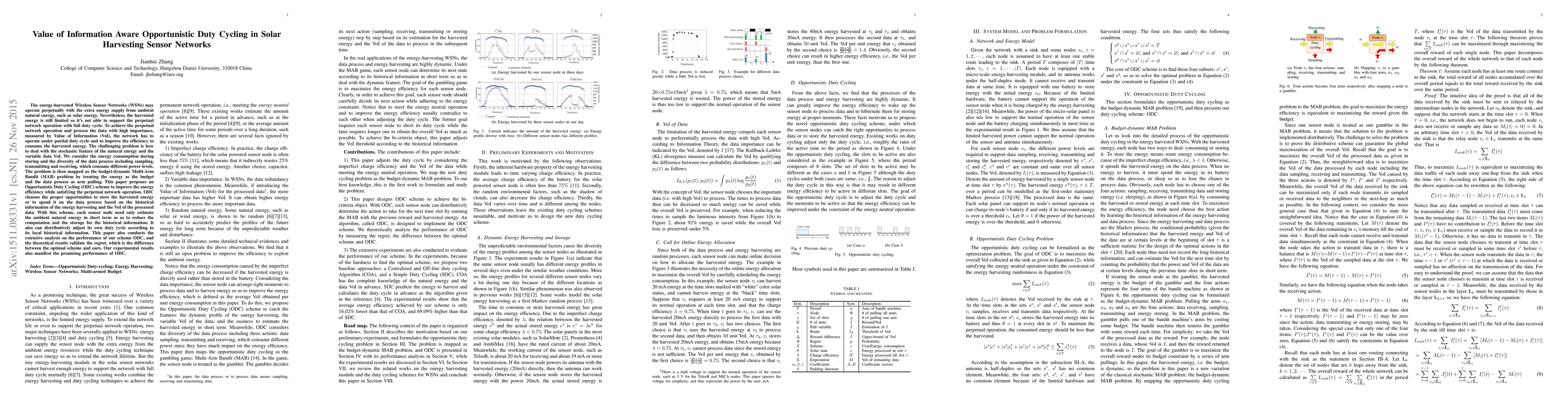 This paper proposes an Opportunistic Duty Cycling (ODC) scheme for energy-harvested Wireless Sensor Networks (WSNs) to manage limited solar energy efficiently while prioritizing high Value of Information (VoI) data. The ODC dynamically adjusts duty cycles based on historical energy harvesting and VoI data, optimizing energy consumption and ensuring perpetual network operation.