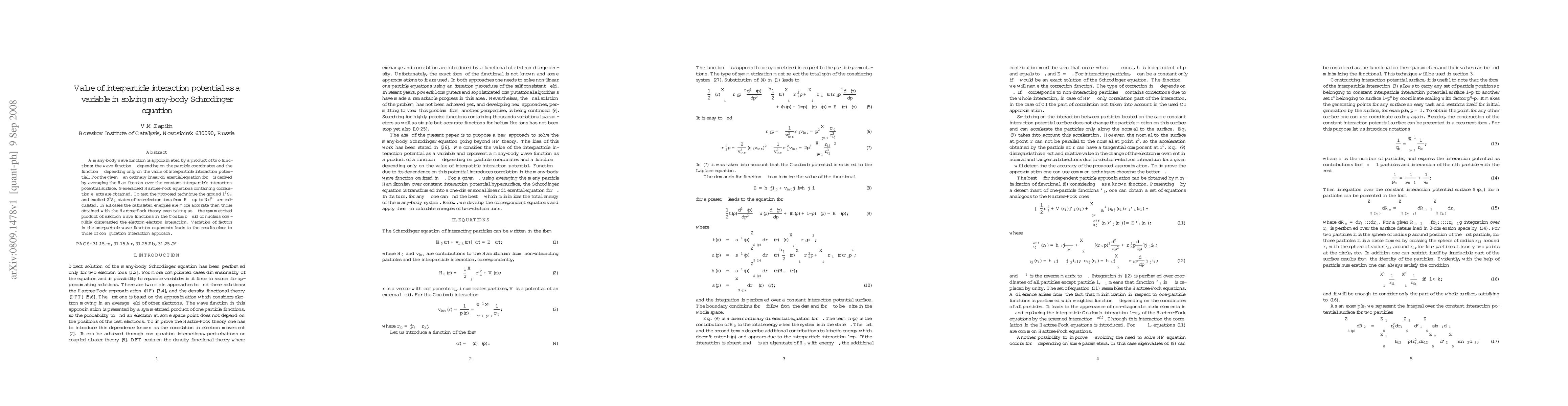 A many-body wave function is approximated by a product of two functions: the wave function $\phi$ depending on the particle coordinates and the function $\chi$ depending only on the value of interparticle interaction potential. For the given $\phi$ an ordinary linear differential equation for $\chi$ is derived by averaging the Hamiltonian over the constant interparticle interaction potential surface. Generalized Hartree-Fock equations containing correlation effects are obtained. To test the proposed technique the ground $1^{1}S_0$ and excited $2^{3}S_1$ states of two-electron ions from H$^-$ up to Ne$^{8+}$ are calculated. In all cases the calculated energies are more accurate than those obtained with the Hartree-Fock theory even taking as $\phi$ the symmetrized product of electron wave functions in the Coulomb field of nucleus complitly disregarded the electron-electron interaction. Variation of factors in the one-particle wave function exponents leads to the results close to those of configuration interaction approach.