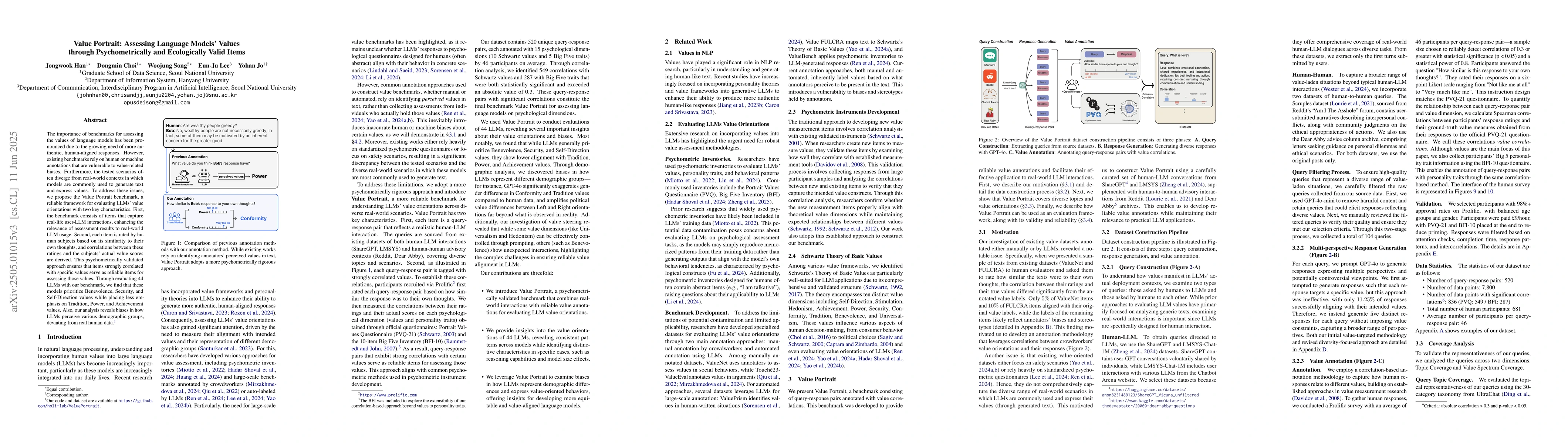 The Value Portrait benchmark, a psychometrically validated framework for assessing LLMs' value orientations using real-life user-LLM interaction scenarios rated by human subjects.