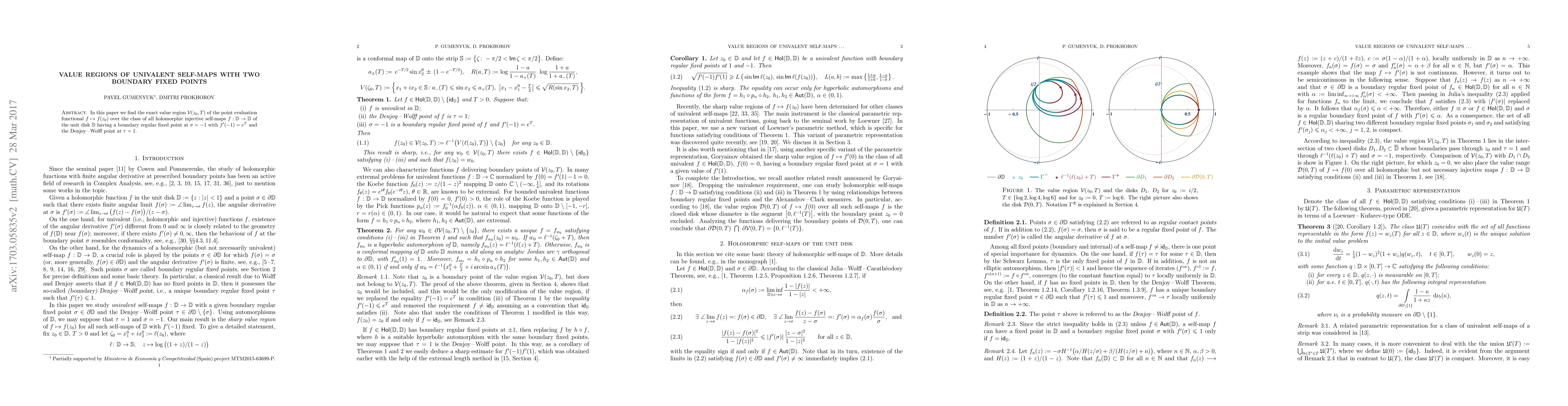 In this paper we find the exact value region $\mathcal V(z_0,T)$ of the point evaluation functional $f\mapsto f(z_0)$ over the class of all holomorphic injective self-maps $f:\mathbb D\to\mathbb D$ of the unit disk $\mathbb D$ having a boundary regular fixed point at $\sigma=-1$ with $f'(-1)=e^{T}$ and the Denjoy - Wolff point at $\tau=1$.