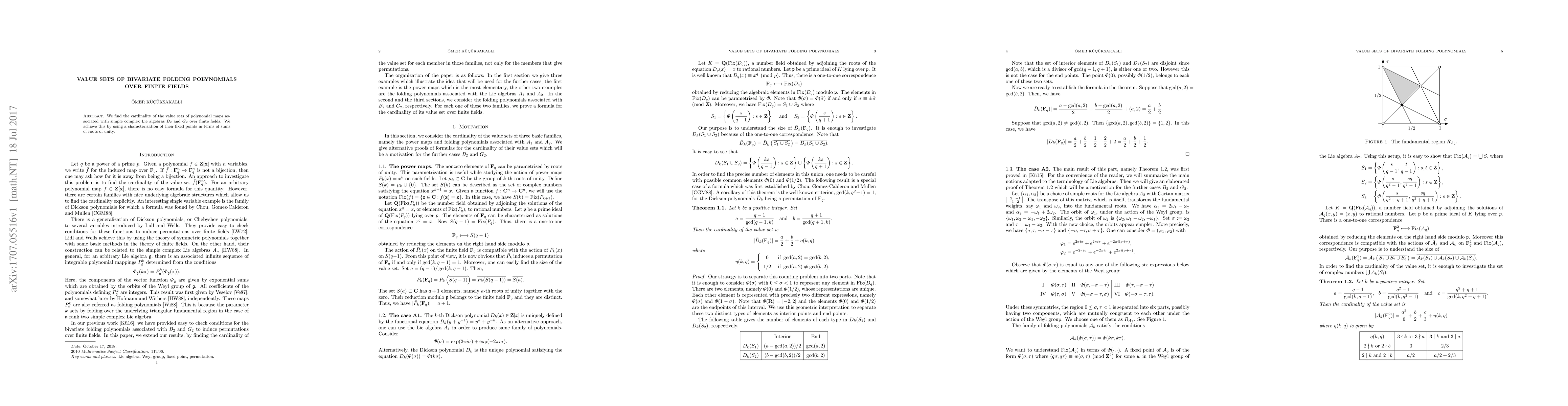 Summary: The paper determines the cardinality of value sets for polynomial maps linked to Lie algebras $B_2$ and $G_2$ over finite fields, utilizing a method that connects fixed points to sums of roots of unity.