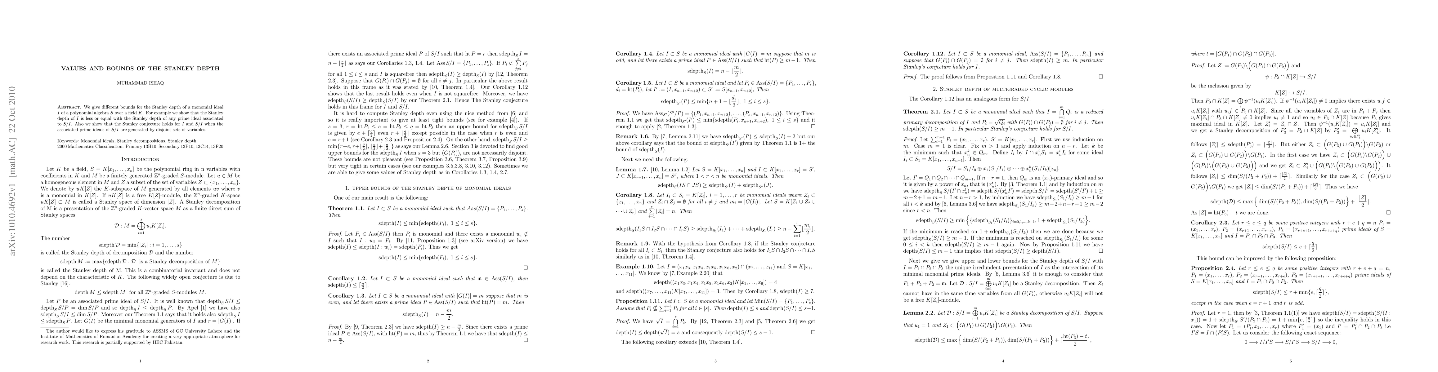 We give different bounds for the Stanley depth of a monomial ideal $I$ of a polynomial algebra $S$ over a field $K$. For example we show that the Stanley depth of $I$ is less or equal with the Stanley depth of any prime ideal associated to $S/I$. Also we show that the Stanley conjecture holds for $I$ and $S/I$ when the associated prime ideals of $S/I$ are generated by disjoint sets of variables.