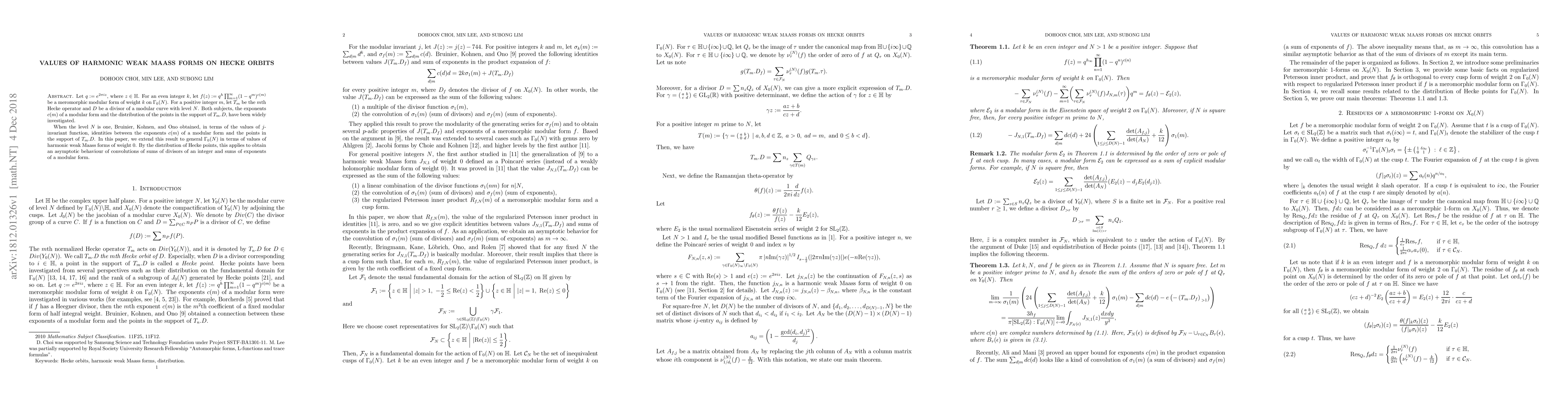 This paper extends a previous result to general modular curves in terms of harmonic weak Maass forms, relating the exponents of a form to the distribution of Hecke points, with implications for asymptotic behavior of divisor sums and exponent convolutions.