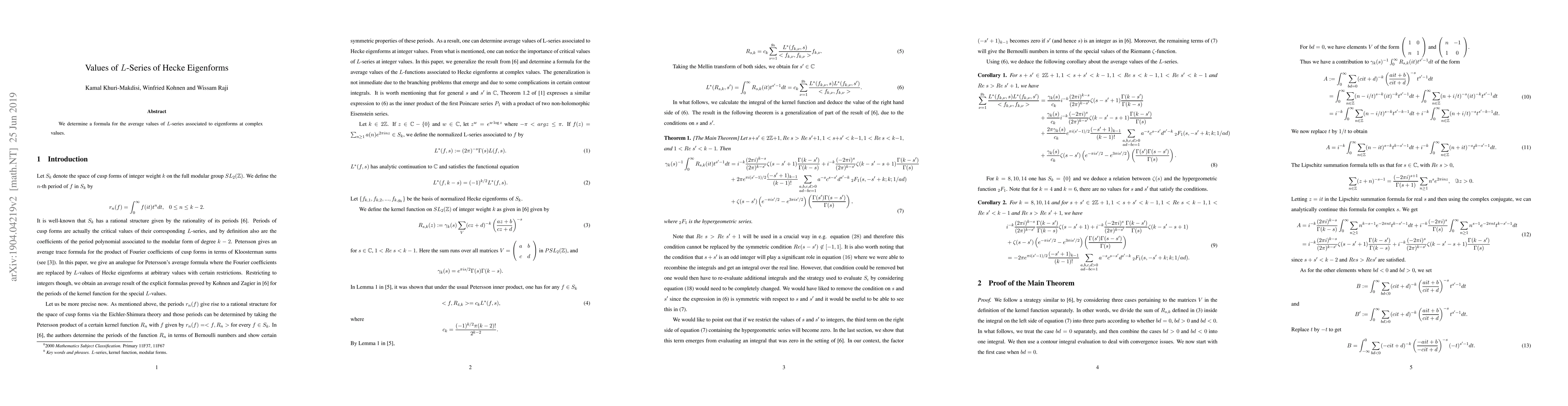We determine a formula for the average values of L-series associated to eigenforms at complex values.