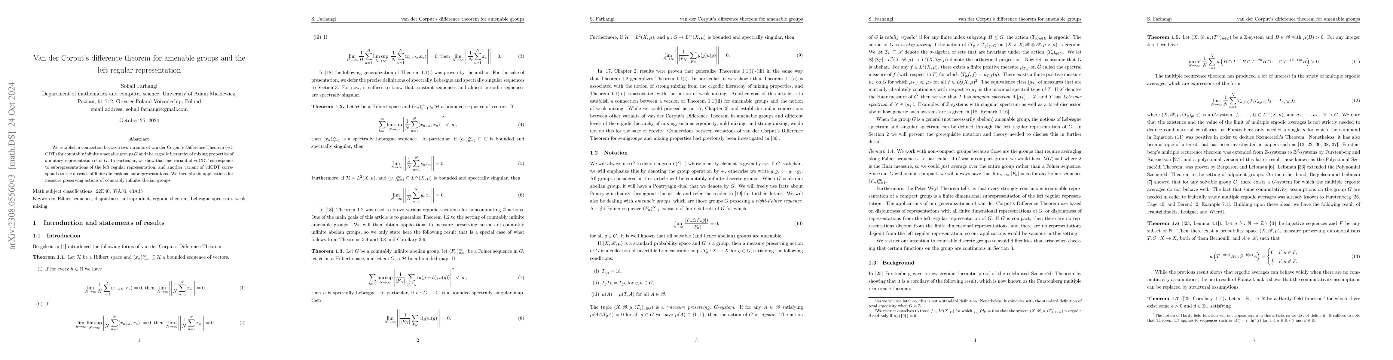 This paper connects van der Corput's Difference Theorem variants for amenable groups to the ergodic hierarchy of mixing properties in a unitary representation. It shows how one variant relates to subrepresentations of the left regular representation and another to the absence of finite-dimensional subrepresentations, with applications to measure-preserving actions of countable abelian groups.