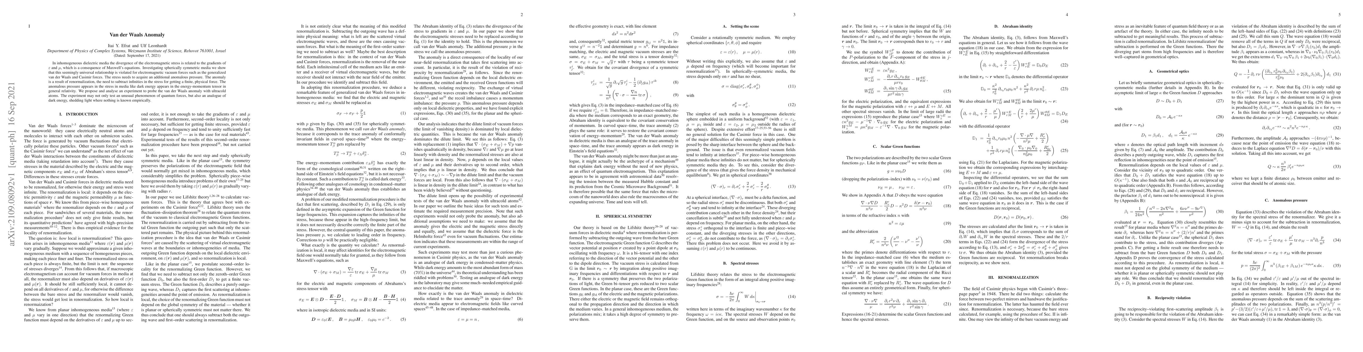 In inhomogeneous dielectric media the divergence of the electromagnetic stress is related to the gradients of \varepsilon and \mu, which is a consequence of Maxwell's equations. Investigating spherically symmetric media we show that this seemingly universal relationship is violated for electromagnetic vacuum forces such as the generalized van der Waals and Casimir forces. The stress needs to acquire an additional anomalous pressure. The anomaly is a result of renormalization, the need to subtract infinities in the stress for getting a finite, physical force. The anomalous pressure appears in the stress in media like dark energy appears in the energy-momentum tensor in general relativity. We propose and analyse an experiment to probe the van der Waals anomaly with ultracold atoms. The experiment may not only test an unusual phenomenon of quantum forces, but also an analogue of dark energy, shedding light where nothing is known empirically.