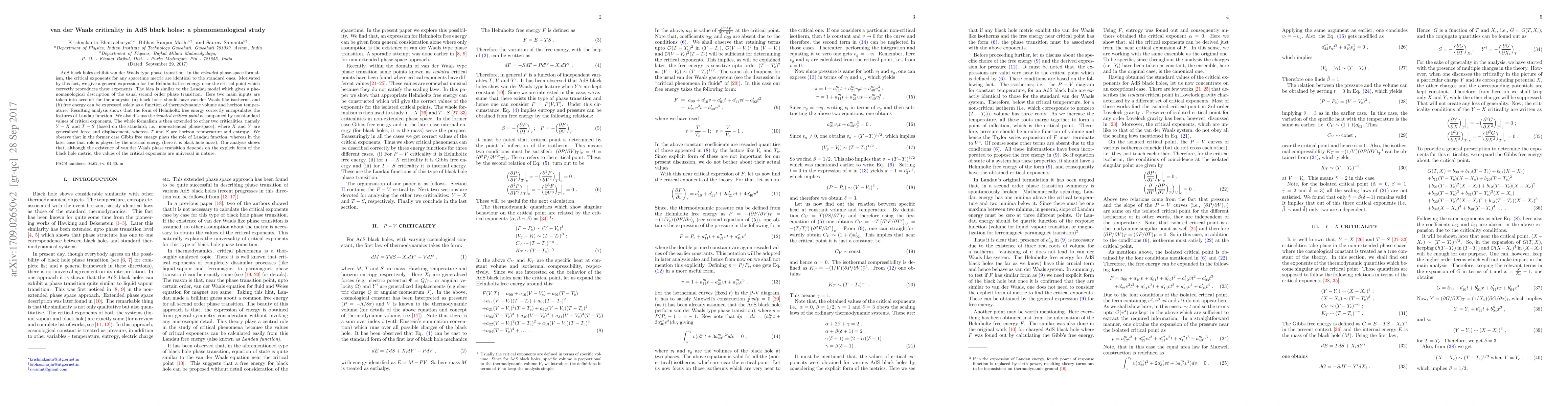 AdS black holes exhibit van der Waals type phase transition. In the {\it extended} phase-space formalism, the critical exponents for any spacetime metric are identical to the standard ones. Motivated by this fact, we give a general expression for the Helmholtz free energy near the critical point which correctly reproduces these exponents. The idea is similar to the Landau model which gives a phenomenological description of the usual second order phase transition. Here two main inputs are taken into account for the analysis: (a) black holes should have van der Waals like isotherms and (b) free energy can be expressed solely as a function of thermodynamic volume and horizon temperature. Resulting analysis shows that the form of Helmholtz free energy correctly encapsulates the features of Landau function. We also discuss the {\it isolated critical point} accompanied by nonstandard values of critical exponents. The whole formalism is then extended to other two criticalities, namely $Y-X$ and $T-S$ (based on the standard; i.e. non-extended phase-space), where $X$ and $Y$ are generalized force and displacement, whereas $T$ and $S$ are horizon temperature and entropy. We observe that in the former case Gibbs free energy plays the role of Landau function, whereas in the later case that role is played by the internal energy (here it is black hole mass). Our analysis shows that, although the existence of van der Waals phase transition depends on the explicit form of the black hole metric, the values of the critical exponents are universal in nature.
