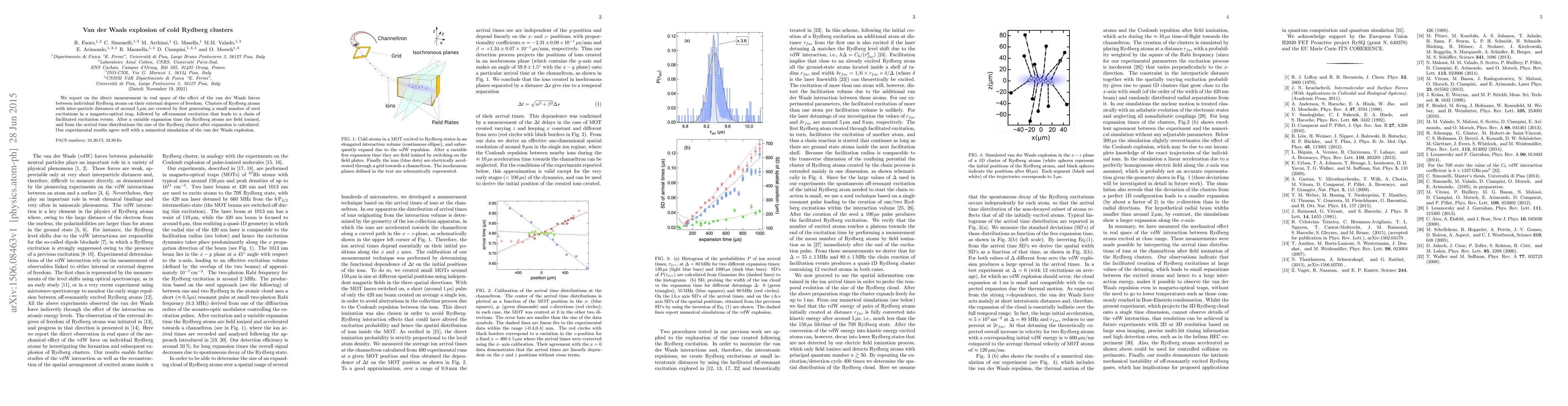 We report on the direct measurement in real space of the effect of the van der Waals forces between individual Rydberg atoms on their external degrees of freedom. Clusters of Rydberg atoms with inter-particle distances of around 5 {\mu}m are created by first generating a small number of seed excitations in a magneto-optical trap, followed by off-resonant excitation that leads to a chain of facilitated excitation events. After a variable expansion time the Rydberg atoms are field ionized, and from the arrival time distributions the size of the Rydberg cluster after expansion is calculated. Our experimental results agree well with a numerical simulation of the van der Waals explosion.