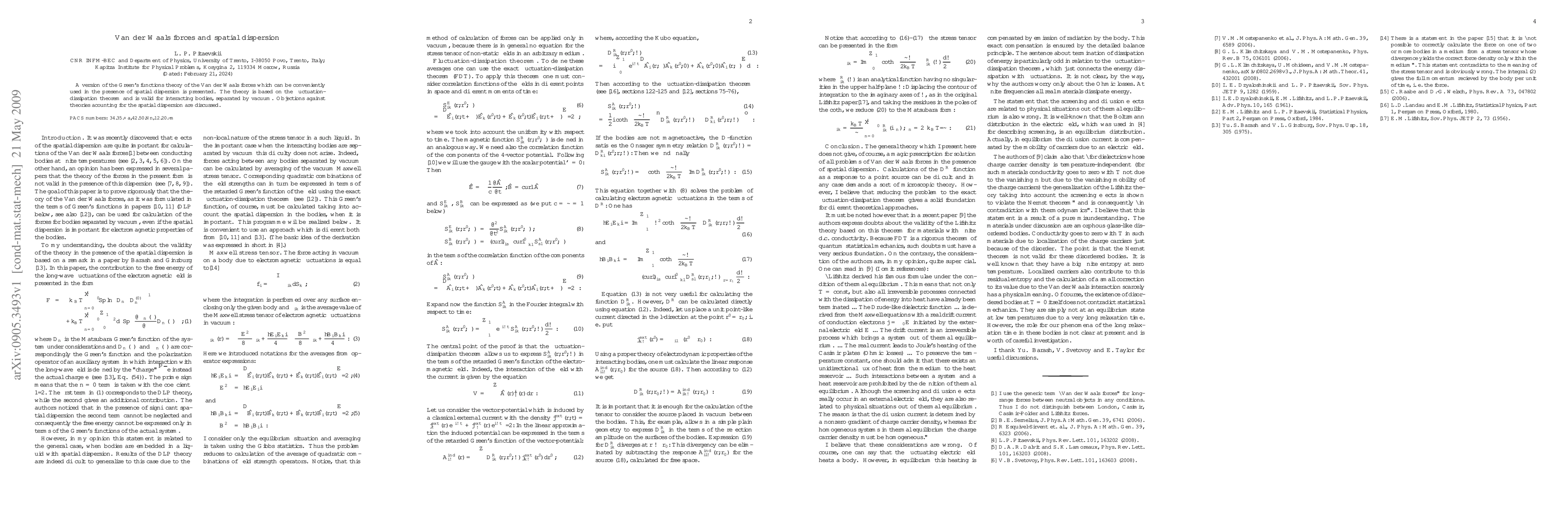 This paper presents a Green's functions theory for Van der Waals forces that accommodates spatial dispersion, grounded in the fluctuation-dissipation theorem, and applies to bodies separated by vacuum. The authors also address criticisms of theories that account for spatial dispersion.