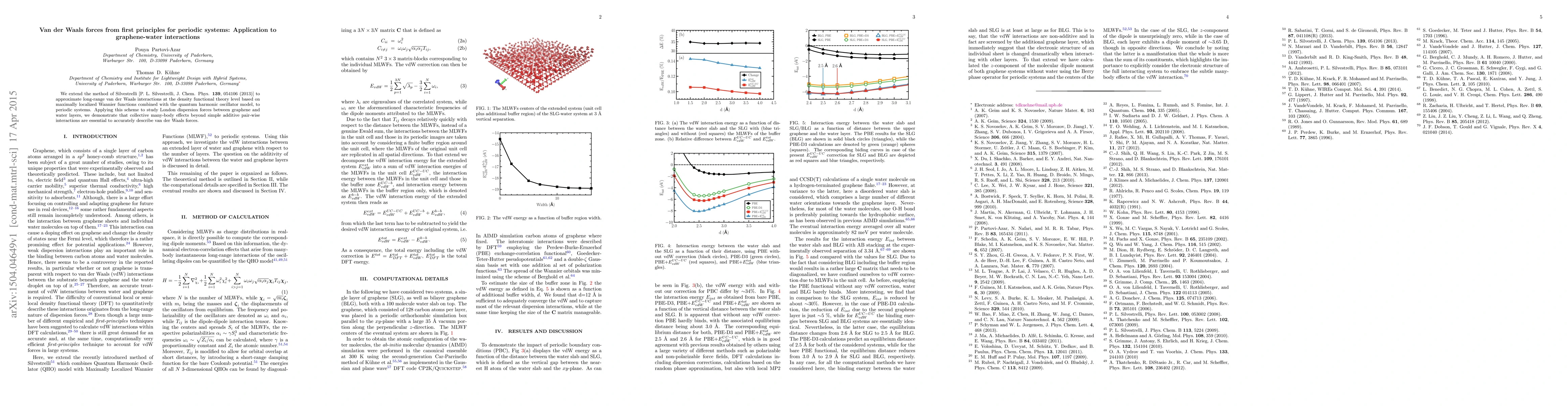 This paper extends a van der Waals forces approximation method to periodic systems using maximally localized Wannier functions and the quantum harmonic oscillator model. It applies the method to graphene-water interactions, revealing that collective many-body effects are crucial for accurately describing van der Waals forces beyond pairwise interactions.