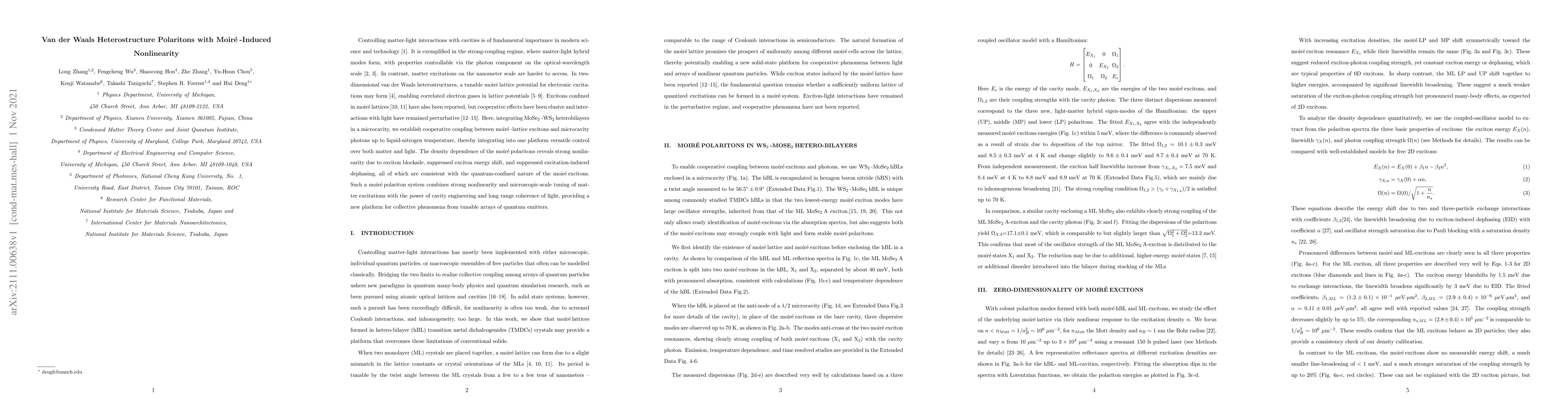 This paper demonstrates cooperative coupling between moiré-lattice excitons in van der Waals heterostructures and microcavity photons, achieving strong nonlinearity and nanoscale control over matter excitations. The study integrates MoSe₂-WS₂ heterobilayers in a microcavity, revealing quantum-confined exciton behavior and potential for collective phenomena in tunable quantum emitter arrays.