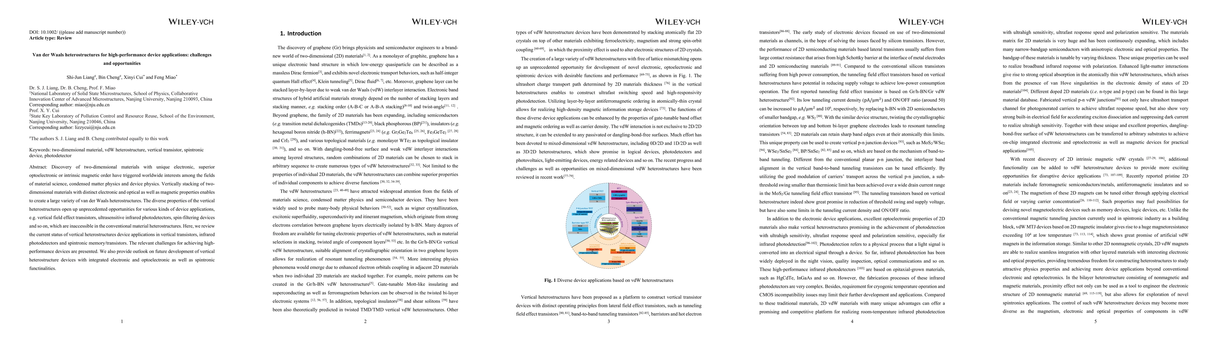 This paper reviews the potential of van der Waals heterostructures, formed by stacking two-dimensional materials with distinct properties, for high-performance device applications such as vertical transistors, infrared photodetectors, and spintronic devices. It discusses current challenges and opportunities for future development in integrating electronic, optoelectronic, and spintronic functionalities.