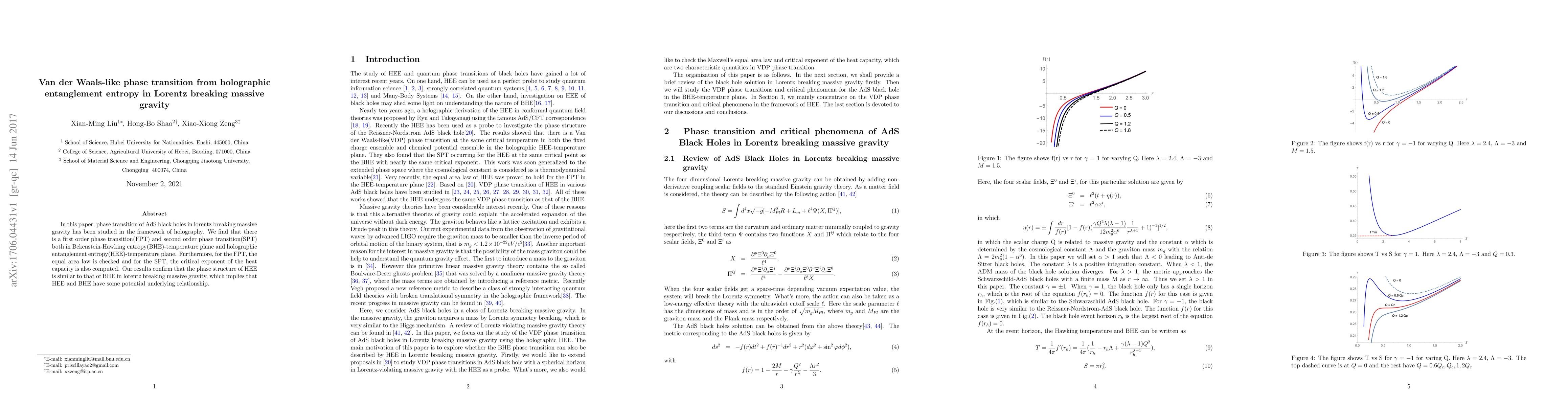 This paper investigates phase transitions in AdS black holes within Lorentz breaking massive gravity using holography, revealing both first and second order transitions in the Bekenstein-Hawking entropy and holographic entanglement entropy planes. The study confirms the equal area law for first order transitions and computes critical exponents for second order transitions, suggesting a potential underlying relationship between holographic entanglement entropy and Bekenstein-Hawking entropy.