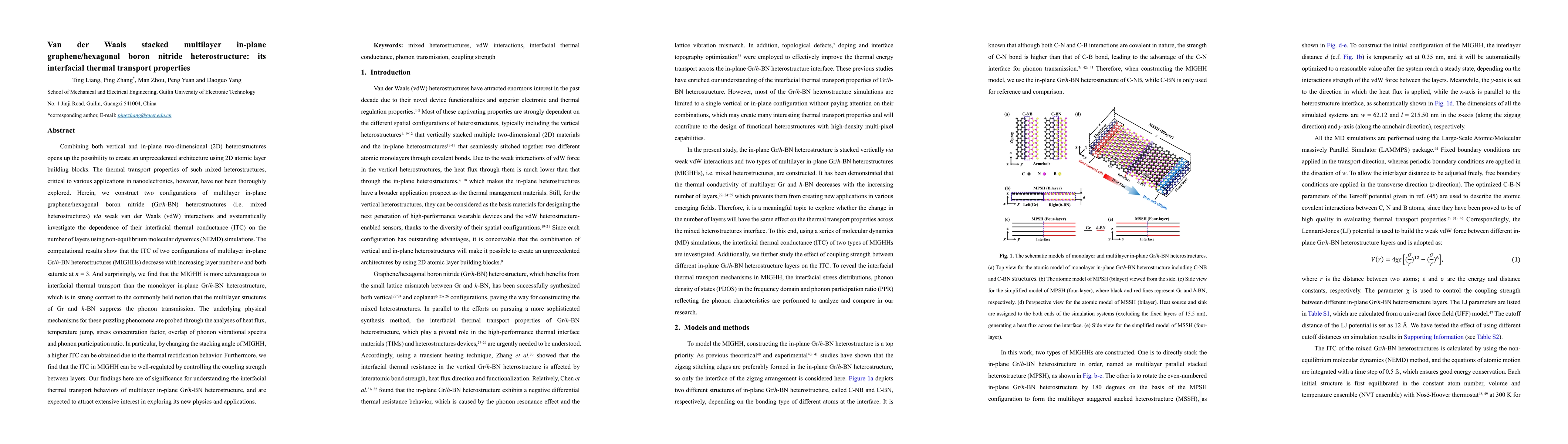 This study constructs and investigates two configurations of multilayer in-plane graphene/hexagonal boron nitride heterostructures via van der Waals interactions, finding that their interfacial thermal conductance decreases with layer number but saturates at three layers, contrary to expectations. The research also reveals mechanisms for enhanced thermal transport and regulation strategies.