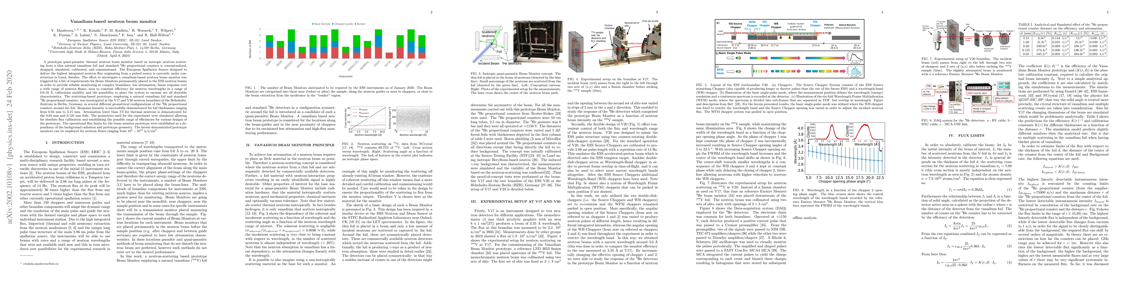 A prototype quasi-parasitic thermal neutron beam monitor based on isotropic neutron scattering from a thin natural vanadium foil and standard $^3$He proportional counters is conceptualized, designed, simulated, calibrated, and commissioned. The European Spallation Source designed to deliver the highest integrated neutron flux originating from a pulsed source is currently under construction in Lund, Sweden. The effort to investigate a vanadium-based neutron beam monitor was triggered by a list of requirements for Beam Monitors permanently placed in the ESS neutron beams in order to provide reliable monitoring at complex beamlines: low attenuation, linear response over a wide range of neutron fluxes, near to constant efficiency for neutron wavelengths in a range of 0.6-10 \r{A}, calibration stability and the possibility to place the system in vacuum are all desirable characteristics. The scattering-based prototype, employing a natural vanadium foil and standard $^3$He proportional counters, was investigated at the V17 and V20 neutron beamlines of the Helmholtz-Zentrum in Berlin, Germany, in several different geometrical configurations of the $^3$He proportional counters around the foil. Response linearity is successfully demonstrated for foil thicknesses ranging from 0.04 mm to 3.15 mm. Attenuation lower than 1% for thermal neutrons is demonstrated for the 0.04 mm and 0.125 mm foils. The geometries used for the experiment were simulated allowing for absolute flux calibration and establishing the possible range of efficiencies for various designs of the prototype. The operational flux limits for the beam monitor prototype were established as a dependency of the background radiation and prototype geometry. The herein demonstrated prototype monitors can be employed for neutron fluxes ranging from $10^3-10^{10}$ n/s/cm$^2$.