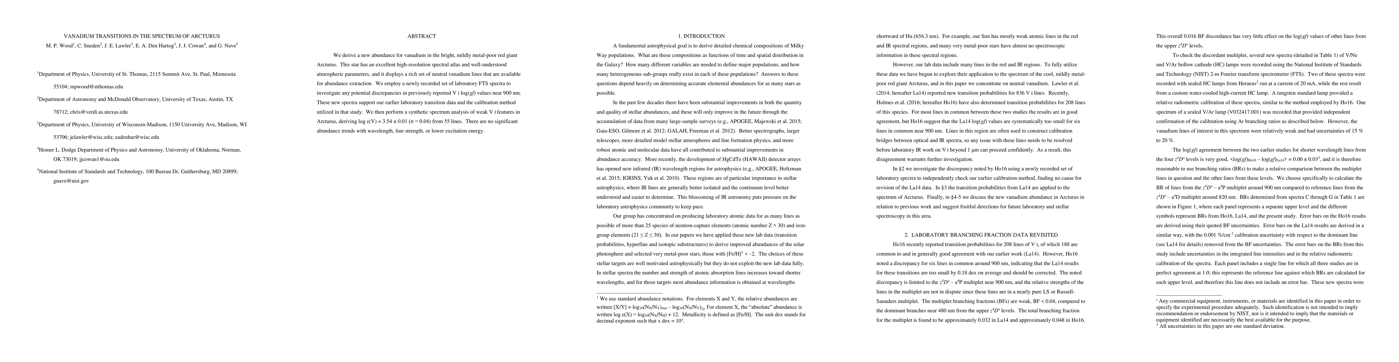 We derive a new abundance for vanadium in the bright, mildly metal-poor red giant Arcturus. This star has an excellent high-resolution spectral atlas and well-understood atmospheric parameters, and it displays a rich set of neutral vanadium lines that are available for abundance extraction. We employ a newly recorded set of laboratory FTS spectra to investigate any potential discrepancies in previously reported V I log(gf) values near 900 nm. These new spectra support our earlier laboratory transition data and the calibration method utilized in that study. We then perform a synthetic spectrum analysis of weak V I features in Arcturus, deriving log {\epsilon}(V) = 3.54 $\pm$ 0.01 ({\sigma} = 0.04) from 55 lines. There are no significant abundance trends with wavelength, line strength, or lower excitation energy.