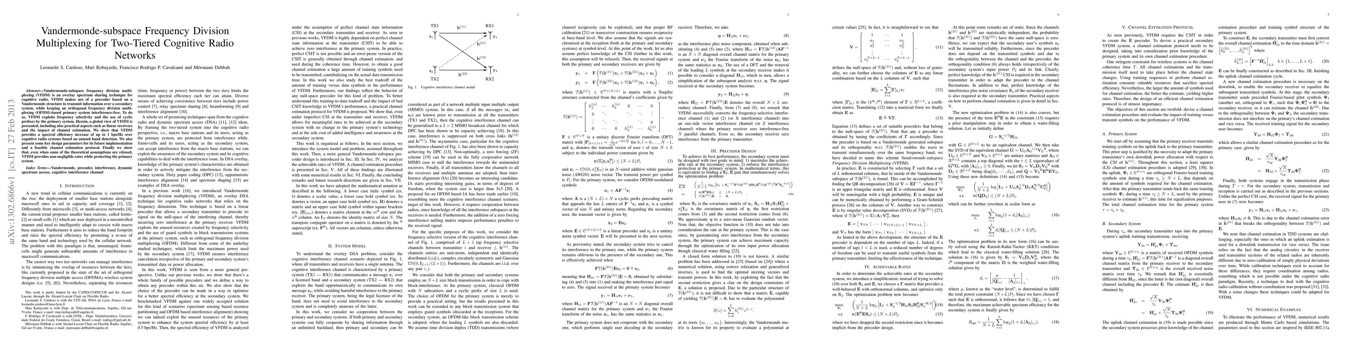 This paper introduces Vandermonde-subspace frequency division multiplexing (VFDM) for cognitive radio networks, enabling secondary systems to share spectrum without interfering with orthogonal frequency division multiplexing (OFDM)-based primary systems. The study demonstrates VFDM's potential for up to 1 bps/Hz spectral efficiency gain and discusses practical implementation aspects, including channel estimation and design parameters.