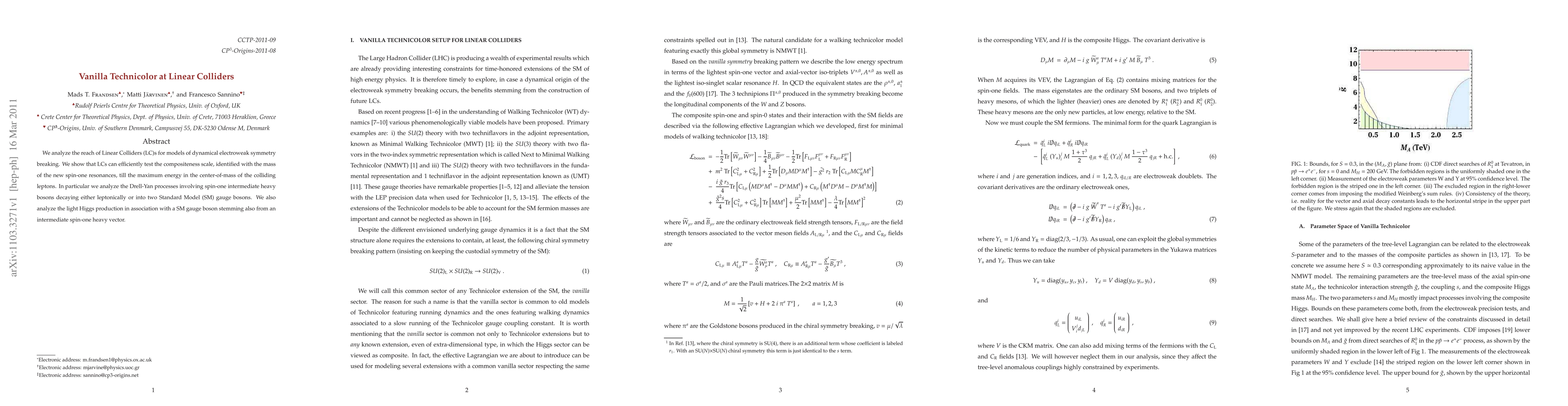 We analyze the reach of Linear Colliders (LC)s for models of dynamical electroweak symmetry breaking. We show that LCs can efficiently test the compositeness scale, identified with the mass of the new spin-one resonances, till the maximum energy in the center-of-mass of the colliding leptons. In particular we analyze the Drell-Yan processes involving spin-one intermediate heavy bosons decaying either leptonically or into two Standard Model (SM) gauge bosons. We also analyze the light Higgs production in association with a SM gauge boson stemming also from an intermediate spin-one heavy vector.