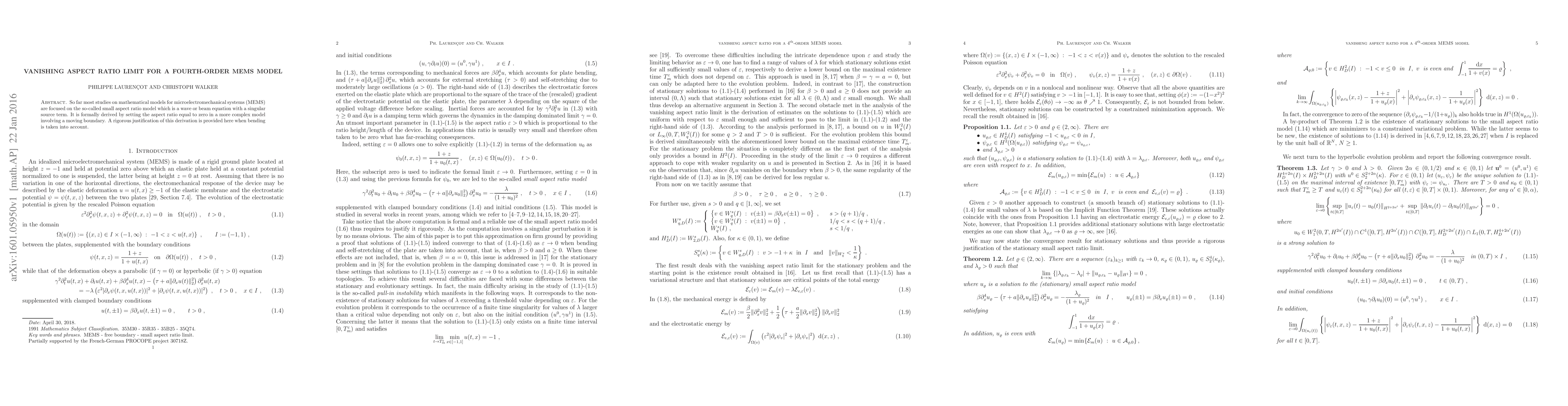 Researchers have developed a mathematical model for MEMS that shows a vanishing aspect ratio limit, justifying why most models focus on small aspect ratios. This finding has implications for understanding the behavior of MEMS under different conditions.