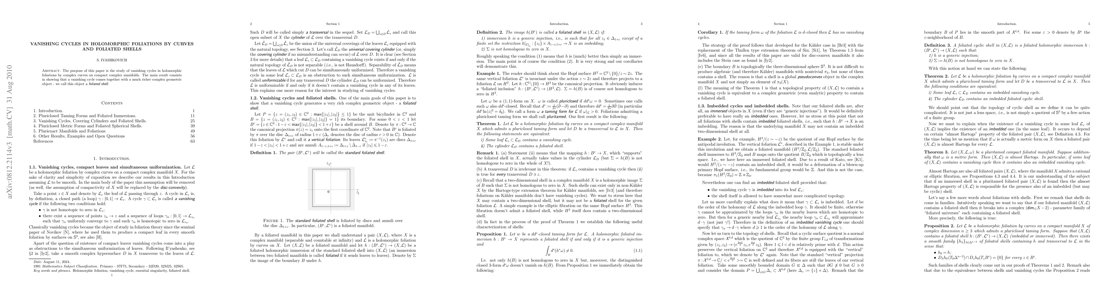 The paper introduces the concept of foliated shells and establishes their relationship with vanishing cycles, providing a deeper understanding of singularities in holomorphic foliations.