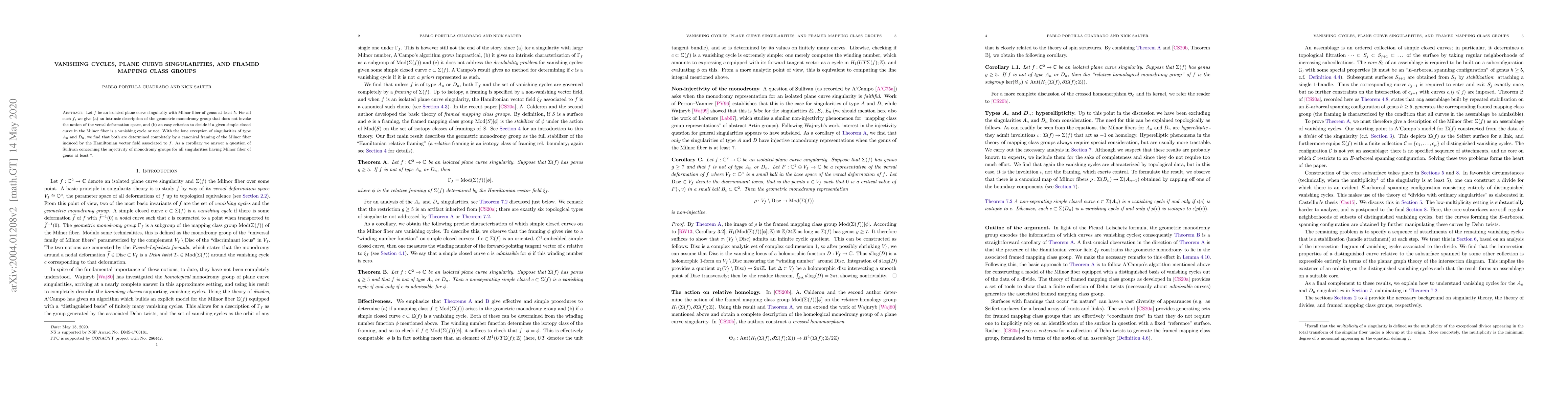 Let f be an isolated plane curve singularity with Milnor fiber of genus at least 5. For all such f, we give (a) an intrinsic description of the geometric monodromy group that does not invoke the notion of the versal deformation space, and (b) an easy criterion to decide if a given simple closed curve in the Milnor fiber is a vanishing cycle or not. With the lone exception of singularities of type $A_n$ and $D_n$, we find that both are determined completely by a canonical framing of the Milnor fiber induced by the Hamiltonian vector field associated to f. As a corollary we answer a question of Sullivan concerning the injectivity of monodromy groups for all singularities having Milnor fiber of genus at least 7.