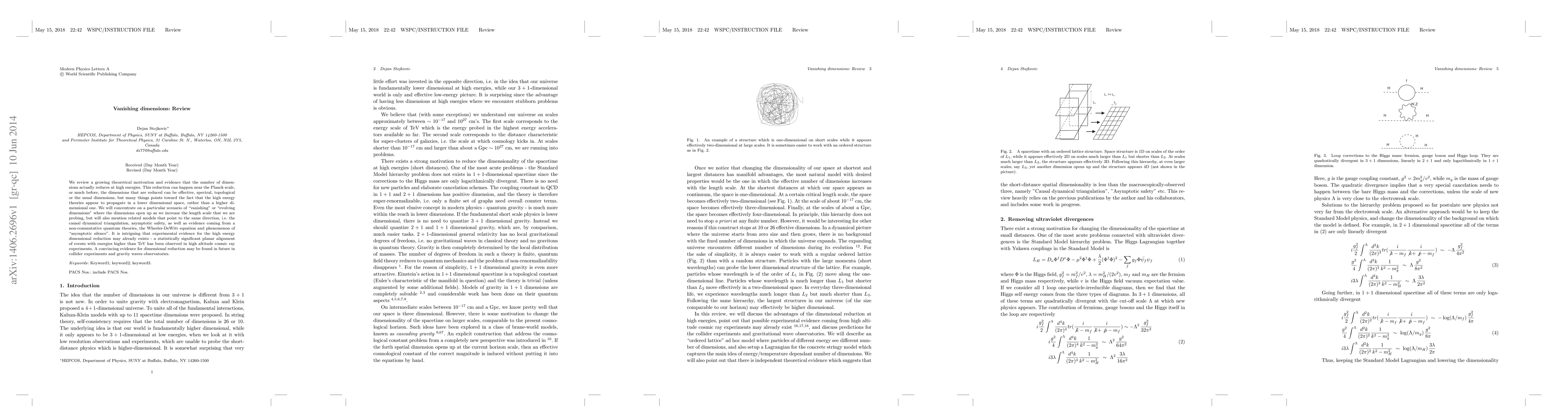 We review a growing theoretical motivation and evidence that the number of dimensions actually reduces at high energies. This reduction can happen near the Planck scale, or much before, the dimensions that are reduced can be effective, spectral, topological or the usual dimensions, but many things points toward the fact that the high energy theories appear to propagate in a lower dimensional space, rather than a higher dimensional one. We will concentrate on a particular scenario of "vanishing" or "evolving dimensions" where the dimensions open up as we increase the length scale that we are probing, but will also mention related models that point to the same direction, i.e. the causal dynamical triangulation, asymptotic safety, as well as evidence coming from a non-commutative quantum theories, the Wheeler-DeWitt equation and phenomenon of "asymptotic silence". It is intriguing that experimental evidence for the high energy dimensional reduction may already exists - a statistically significant planar alignment of events with energies higher than TeV has been observed in high altitude cosmic ray experiments. A convincing evidence for dimensional reduction may be found in future in collider experiments and gravity waves observatories.