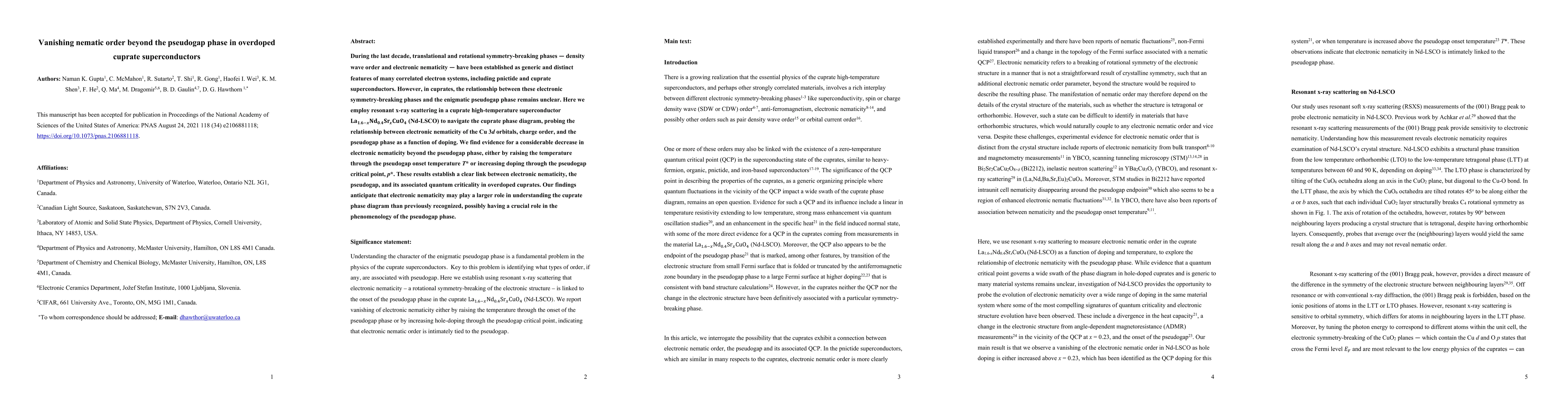 This study uses resonant x-ray scattering to investigate the relationship between electronic nematicity and the pseudogap phase in overdoped cuprate superconductors. The research reveals a significant reduction in electronic nematicity beyond the pseudogap phase, suggesting a crucial link between nematicity and the pseudogap's quantum criticality.