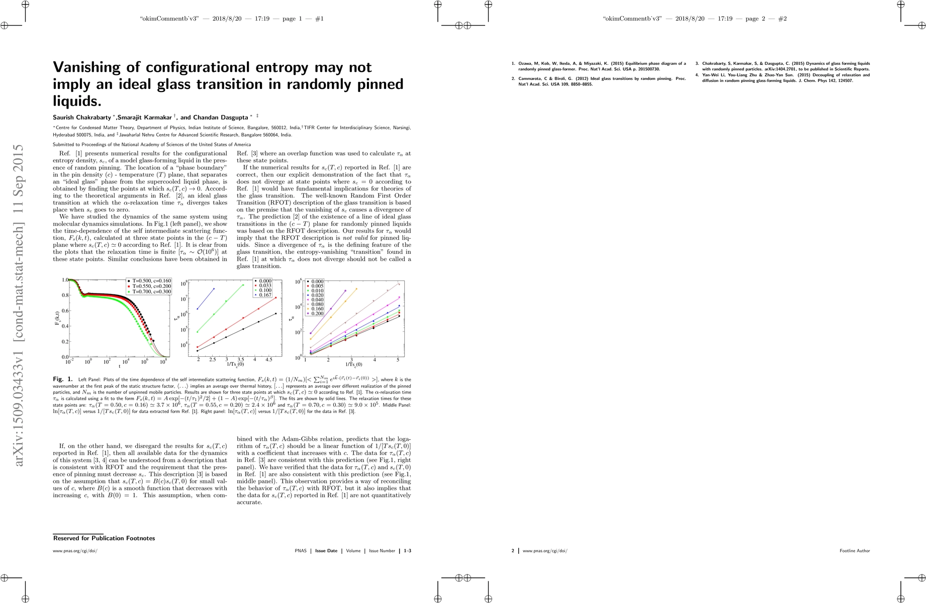 Ozawa et al. found that the configurational entropy density $s_c$ approaches zero in randomly pinned liquids, suggesting an "ideal glass" transition. However, molecular dynamics simulations show that the $\alpha$-relaxation time $\tau_\alpha$ remains finite ($\mathcal{O}(10^6)$), indicating that vanishing $s_c$ does not imply an ideal glass transition.