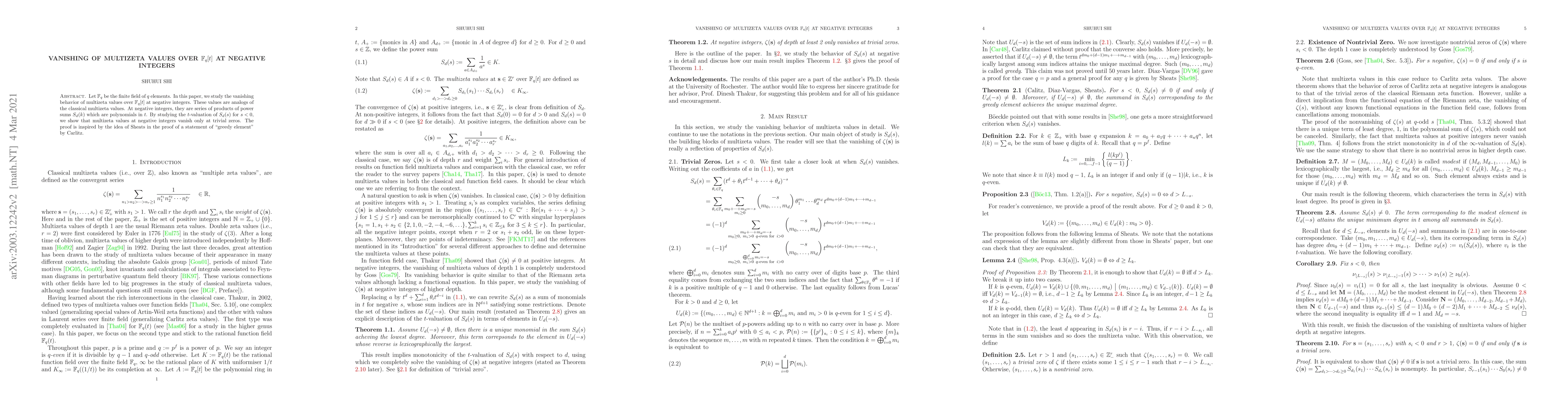 This paper investigates the vanishing behavior of multizeta values over $\mathbb{F}_q[t]$ at negative integers, showing they vanish only at trivial zeros. The study is inspired by Sheats' proof of Carlitz's "greedy element" theorem.