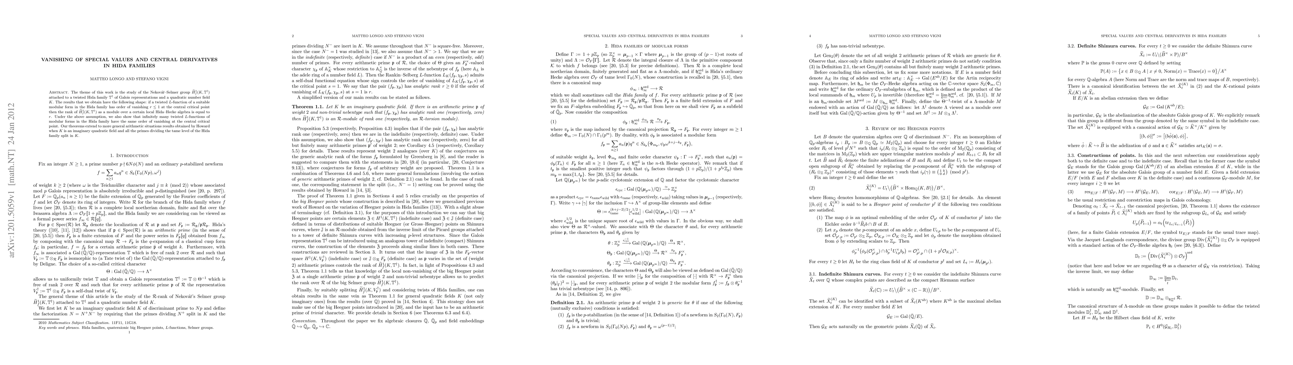 The theme of this work is the study of the Nekov\'a\v{r}-Selmer group H^1_f(K,T) attached to a twisted Hida family T of Galois representations and a quadratic number field K. The results that we obtain have the following shape: if a twisted L-function of a suitable modular form in the Hida family has order of vanishing r at most 1 at the central critical point then the rank of H^1_f(K,T) as a module over a certain local Hida-Hecke algebra is equal to r. Under the above assumption, we also show that infinitely many twisted L-functions of modular forms in the Hida family have the same order of vanishing at the central critical point. Our theorems extend to more general arithmetic situations results obtained by Howard when K is an imaginary quadratic field and all the primes dividing the tame level of the Hida family split in K.