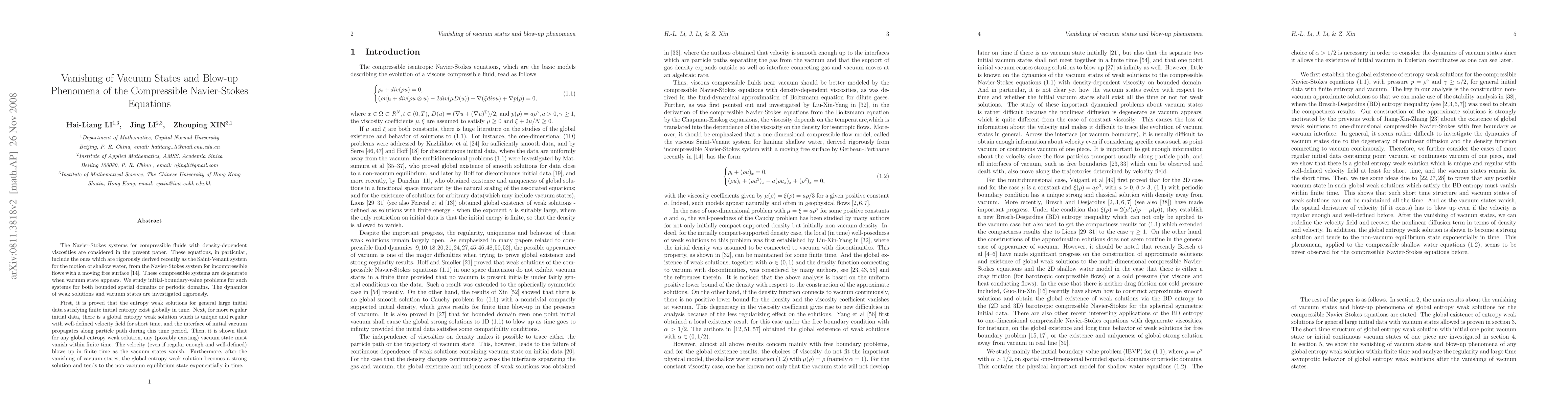 The Navier-Stokes systems for compressible fluids with density-dependent viscosities are considered in the present paper. These equations, in particular, include the ones which are rigorously derived recently as the Saint-Venant system for the motion of shallow water, from the Navier-Stokes system for incompressible flows with a moving free surface [14]. These compressible systems are degenerate when vacuum state appears. We study initial-boundary-value problems for such systems for both bounded spatial domains or periodic domains. The dynamics of weak solutions and vacuum states are investigated rigorously. First, it is proved that the entropy weak solutions for general large initial data satisfying finite initial entropy exist globally in time. Next, for more regular initial data, there is a global entropy weak solution which is unique and regular with well-defined velocity field for short time, and the interface of initial vacuum propagates along particle path during this time period. Then, it is shown that for any global entropy weak solution, any (possibly existing) vacuum state must vanish within finite time. The velocity (even if regular enough and well-defined) blows up in finite time as the vacuum states vanish. Furthermore, after the vanishing of vacuum states, the global entropy weak solution becomes a strong solution and tends to the non-vacuum equilibrium state exponentially in time.
