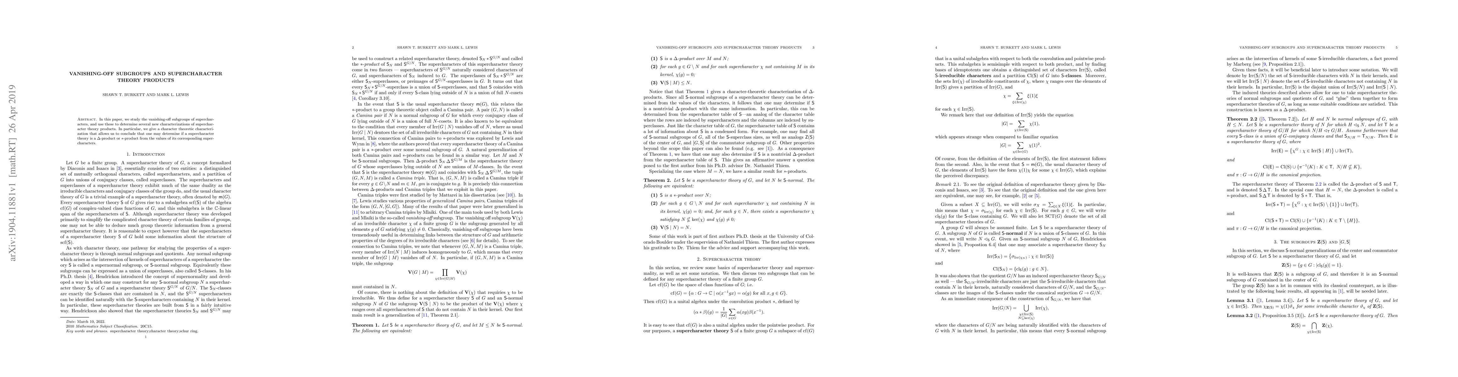 In this paper, we study the vanishing-off subgroups of supercharacters, and use these to determine several new characterizations of supercharacter theory products. In particular, we give a character theoretic characterization that allows us to conclude that one may determine if a supercharacter theory is a $\Delta$-product or $\ast$-product from the values of its corresponding supercharacters.