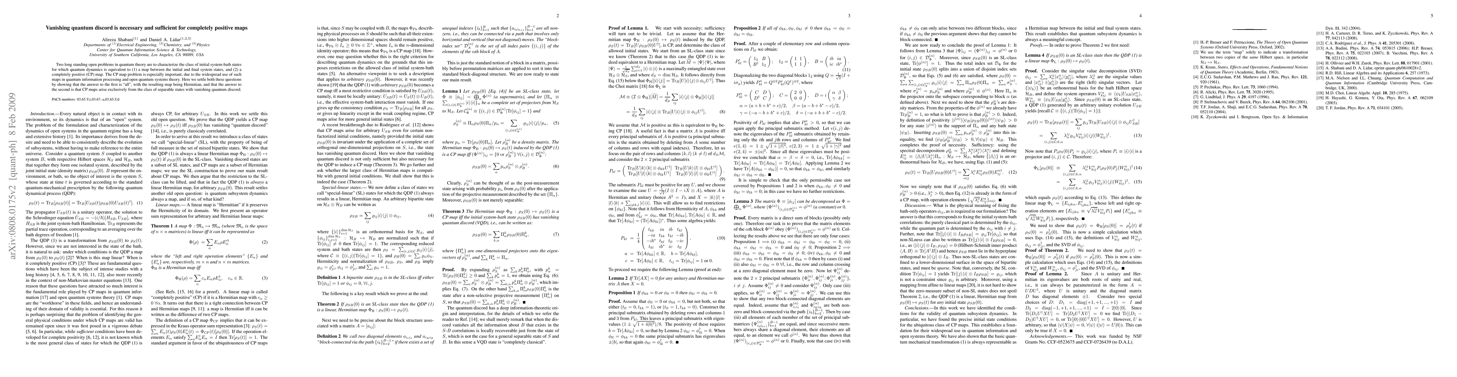 The paper resolves two key problems in quantum dynamics: all initial system-bath states lead to Hermitian maps, while completely positive maps only occur from separable states with zero quantum discord. This finding has implications for quantum information processing and open quantum systems.
