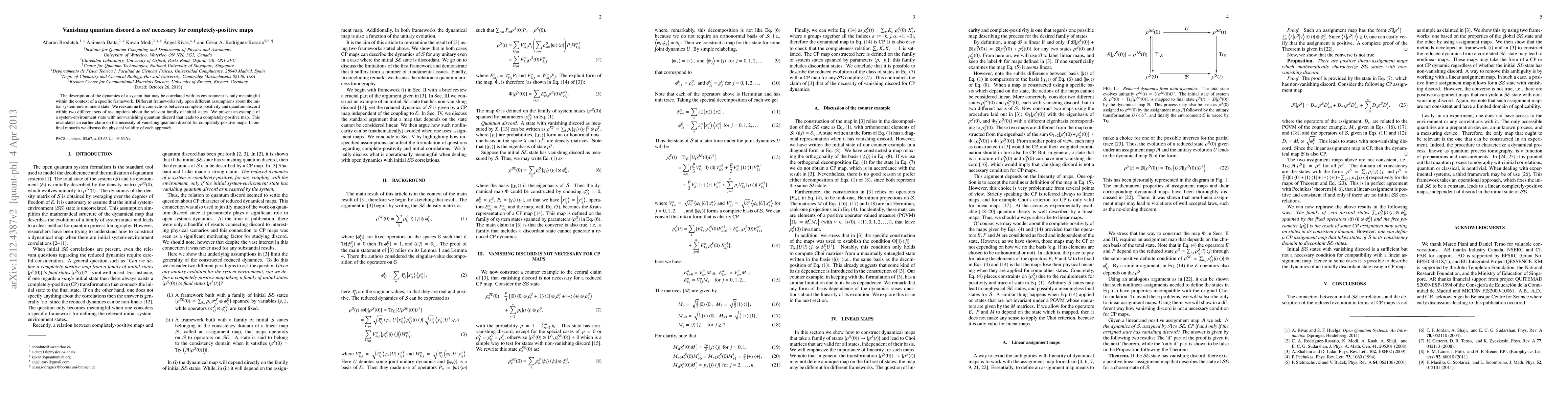 This paper demonstrates that quantum discord does not need to vanish for a completely-positive map to occur, refuting an earlier claim. It examines the dynamics of correlated systems within different initial state assumptions, highlighting a specific example where non-vanishing quantum discord still results in a completely-positive map.