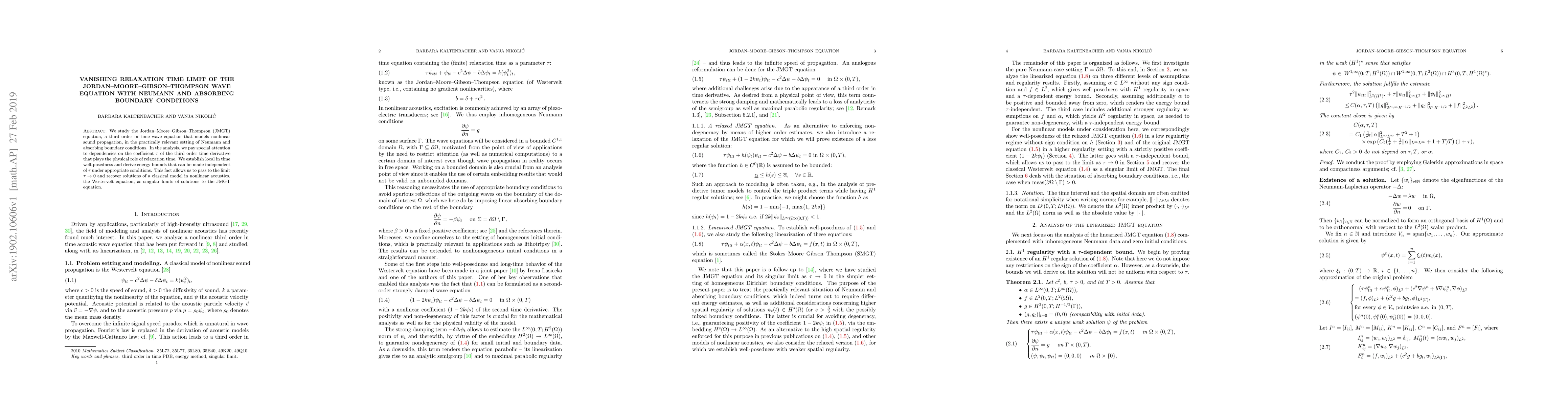 This paper investigates the Jordan-Moore-Gibson-Thompson (JMGT) wave equation under Neumann and absorbing boundary conditions, focusing on the vanishing relaxation time limit. It establishes local well-posedness and energy bounds independent of the relaxation time coefficient, leading to the recovery of the Westervelt equation as the limit of JMGT solutions.