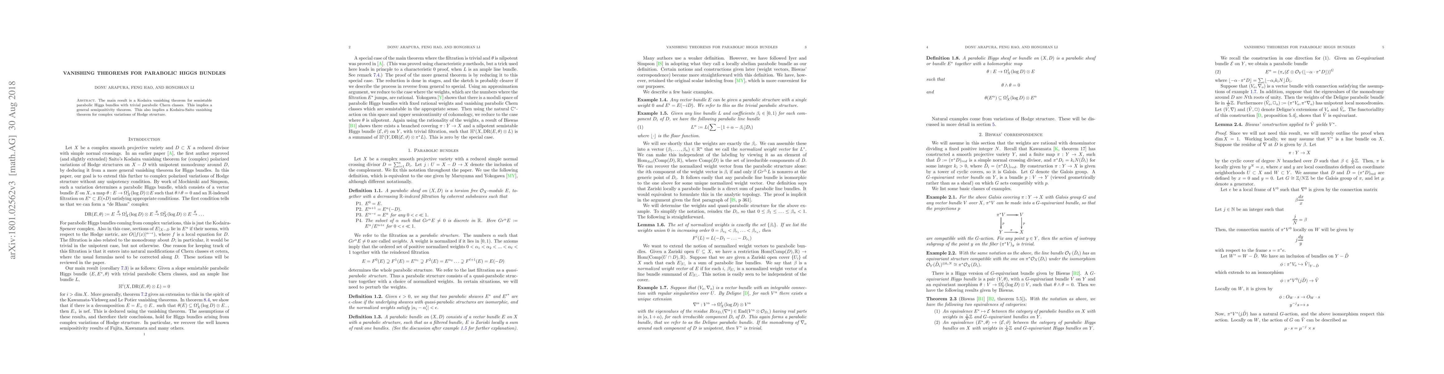 Summary: The paper establishes a Kodaira vanishing theorem for semistable parabolic Higgs bundles in characteristic zero, showing semipositivity and deriving a Kodaira-Saito vanishing theorem for complex variations of Hodge structure.