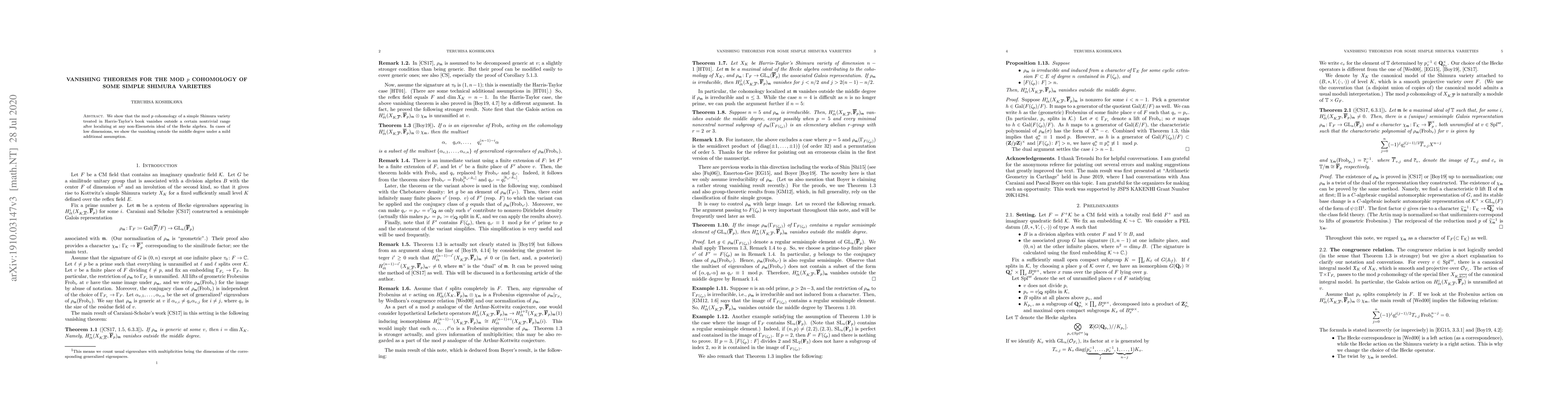 Summary: This paper demonstrates that the mod $p$ cohomology of a specific simple Shimura variety vanishes outside a nontrivial range when localized at non-Eisenstein ideals of the Hecke algebra, and in low dimensions, it vanishes outside the middle degree.