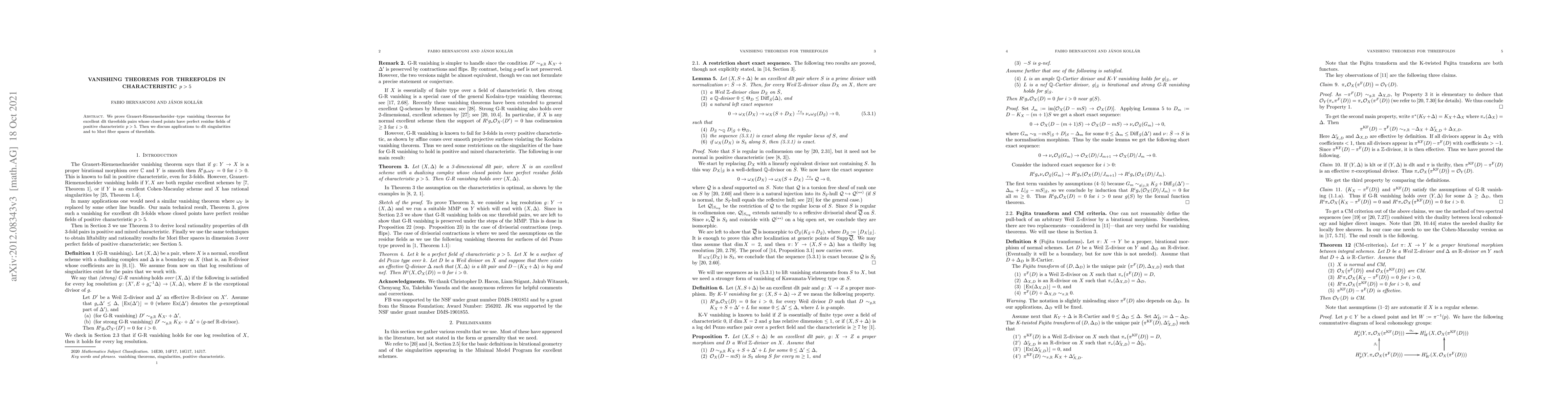 We prove Grauert-Riemenschneider-type vanishing theorems for excellent dlt threefolds pairs whose closed points have perfect residue fields of positive characteristic $p>5$. Then we discuss applications to dlt singularities and to Mori fiber spaces of threefolds.